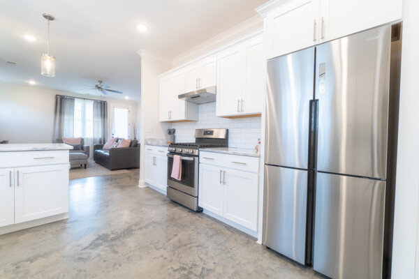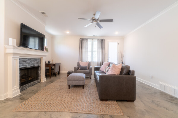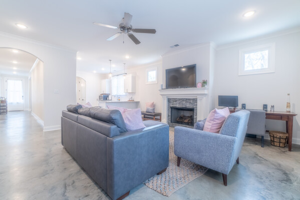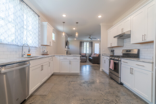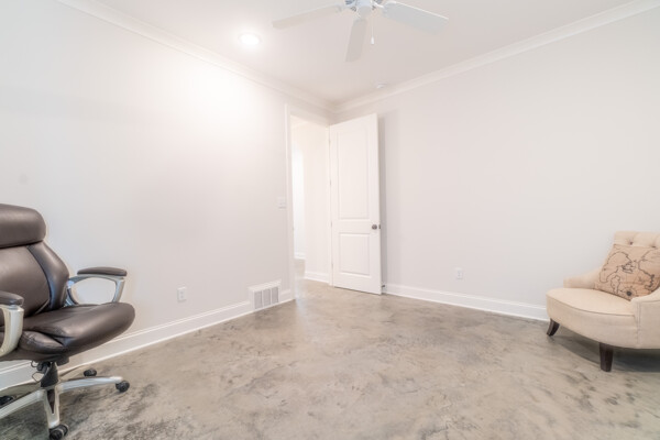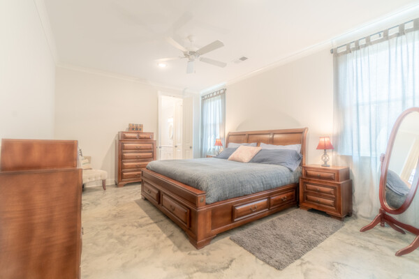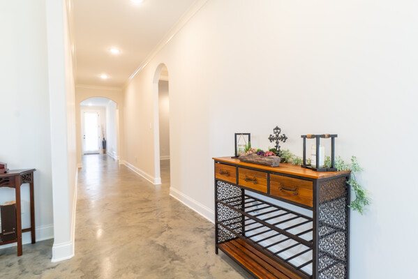 This one level home has stained concrete floors throughout, Stone counters Stainless appliances, large master suite with walk in closet and big shower. Huge Backyard with New Wood Fence and Fresh Sod.