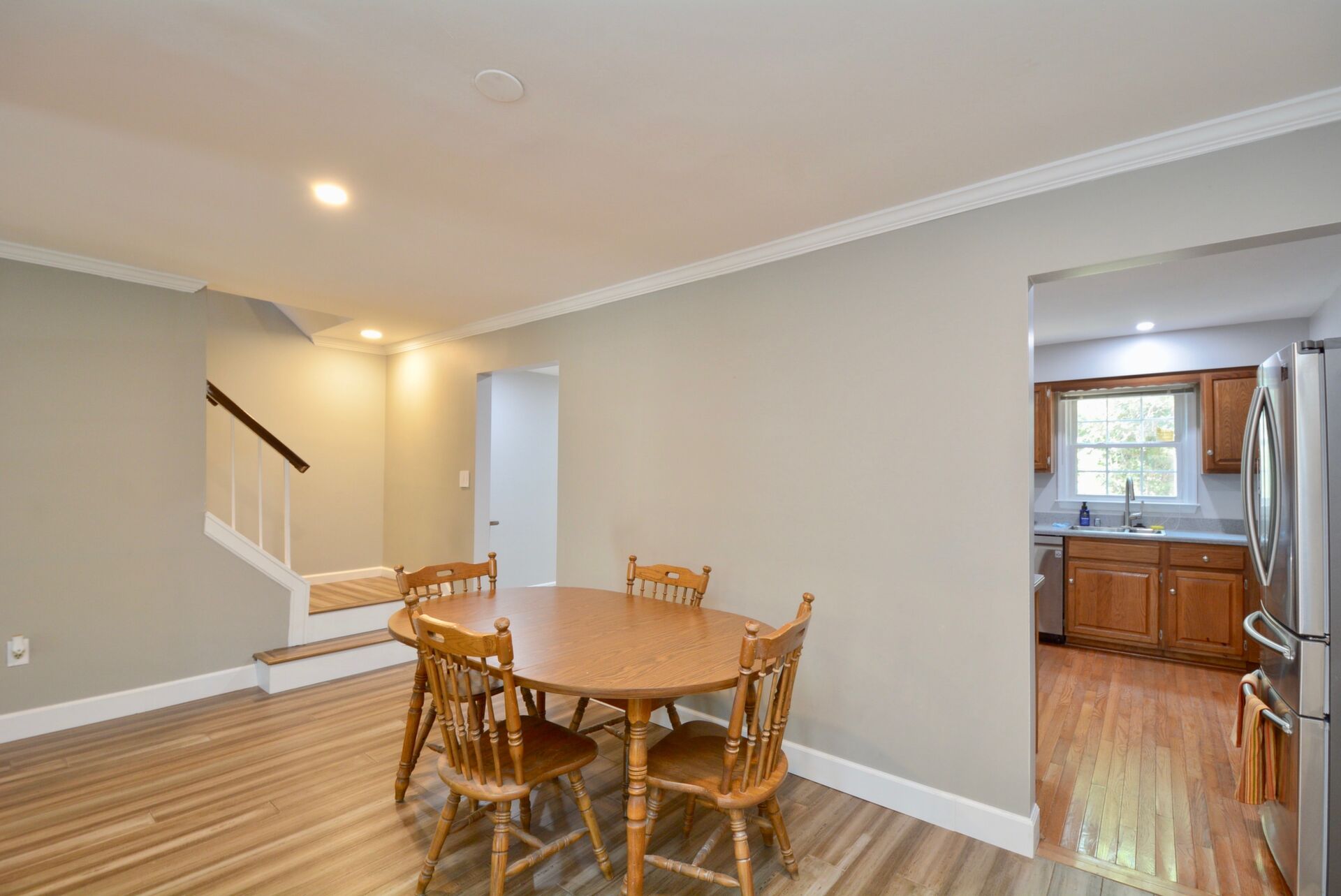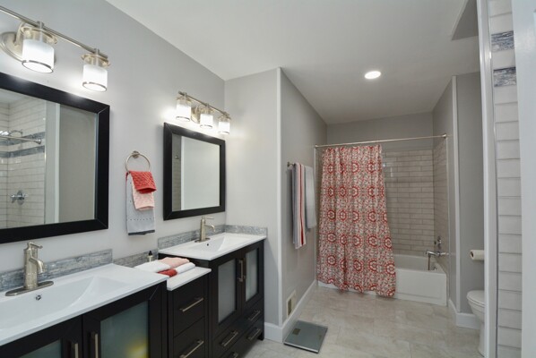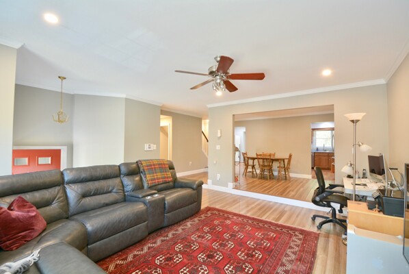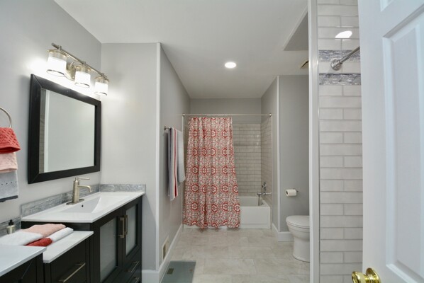 This home features updated flooring, stainless steel appliances in the kitchen, a beautiful living/dining combination, a rec room with a cozy fireplace and walks out to a deck. Your primary suite has a completely updated brand new bathroom and a walk-in closet!