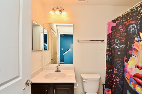 This home boasts an open floor plan concept on the main level, large primary bedroom with walk-in closet and private bath, loft space which is great for home office or exercise space and a rooftop deck to relax on after a long day.