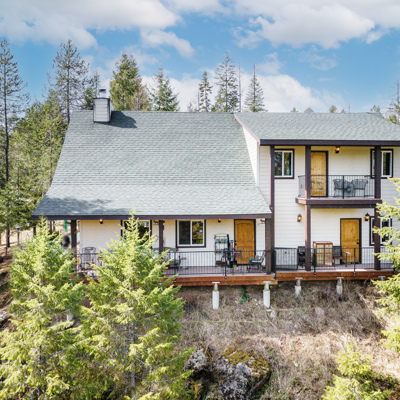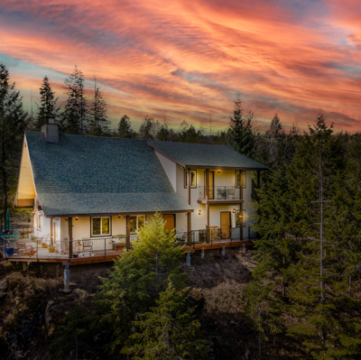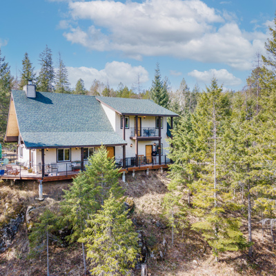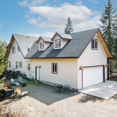 Welcome to this Idaho Trophy custom-built home, nestled on five acres of lush timber with a seasonal creek and meandering pathway on your property. This three-bedroom, two and a half bath has all the upgrades for five-star living year-round! The open great room features a floor to ceiling stone Fireplace Xtraordinair with wood beam ceiling T&G accents. Granite countertops, knotty alder cabinets with soft close hinges, Granite counter tops and so much more! There is a main level master with a walk-in shower and jetted soaker tub, and over 700 square feet of decking to capture spectacular views. Also included is a whole house 16 kw Generac generator with an automatic transfer switch, instant hot water, R/O under the kitchen sink water system, Radiant in-floor heating both up and downstairs, an oversized garage, 40’ X 20’ insulated shop with a 14-foot door and additional covered storage, with two 220 electrical outlets, and a wood-burning stove! Public Access to Lake is nearby.