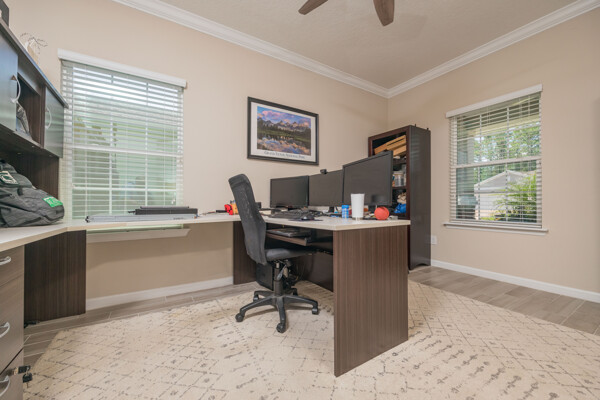 Indulge in your dream lifestyle at this exceptional 4-bedroom, 3-bathroom home, nestled in one of St. Augustine's most esteemed communities. Constructed in 2018 by the renowned builder Lennar, this ''Cordova Bonus'' floor plan has been impeccably maintained and offers an open and inviting layout, complemented by serene water views. The heart of this home is centered around the designer kitchen, which boasts a stunning backsplash and is fully equipped with a gas cooktop and stainless steel appliances, elevating your culinary experience to new heights. This culinary haven is designed for both functionality and style, making it a joy to prepare meals and entertain guests. The spacious downstairs primary suite serves as a true retreat with gorgeous water views. The lavish en suite primary bathroom features a dual sink vanity, a soothing soaking tub, a water closet, and an upgraded closet system, offering ample storage space and a touch of opulence. Wake up to breathtaking mornings on your screened lanai, where you can relish the beauty of the sunrise over the water. This outdoor sanctuary provides the perfect spot to start your day with a sense of serenity and natural beauty. Unwind and find solace in the retreat room, thoughtfully designed to cater to your individual needs and preferences, and perfectly situated between the two downstairs bedrooms. Upstairs, a charming bonus room with an en suite bathroom and vaulted ceilings awaits, presenting limitless possibilities as a home office, guest suite, or entertainment area. The main living area is adorned with wood-inspired tile flooring, while crown moulding adds a touch of elegance and warmth throughout the interior. Experience the utmost in efficiency and convenience with the gas dryer and tankless water heater. Additionally, the home is equipped with the Nexia Home Intelligence System, offering smart home automation for enhanced comfort and control. This beautiful home has seen numerous upgrades since its purchase, ensuring that you'll enjoy the latest modern comforts and amenities including a surround sound speaker system, upgraded light fixtures, nest smart control system, epoxy garage floors, and water softener system. Located on the west bank of Florida's Intracoastal Waterway, you will find so much that this charming community has to offer. This ideal location is minutes away from Historic Downtown St. Augustine, local shopping, recreation, and pristine local beaches. Immerse yourself in the exceptional lifestyle that awaits, complete with a top-rated school system and resort-style amenities. Indulge in the luxury of four swimming pools, a state-of-the-art fitness facility, ten tennis hydro-grid clay courts, sports fields, and an extensive 8-mile network of walking/running trails. This gated community is truly one of a kind with a boardwalk provides safe access directly to the Intracoastal Waterway. Enjoy true Florida living in this beautiful home in the desirable community of Palencia.