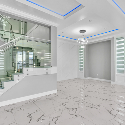 Brand new home (9 Bedrooms+Den, 8 Baths) with unique bright/open plan, big 60' x 130' lot. All rooms very spacious. Central air-conditioning, radiant hot-water heat, HRV system, camera security system, high-efficiency hot-water furnace, high quality appliances, covered patios/decks, double garage. Main floor features big living and dining rooms, huge family room and designer kitchen, spice kitchen, a large master bedroom with full en-suite, and a separate Den and a powder room. Top floor has two super sized master bedrooms and two other bedrooms with a shared full bath. Basement has a huge Media room with wet bar and a guest bedroom with full bath, plus a Rec-room, a Gym room and 3 bedrooms and 2 full baths. Reputable builder, 2-5-10 new home warranty.