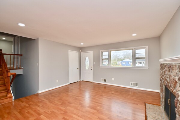 This home features fresh paint, hardwood floors on the upper level, a cozy fireplace in the living room, a finished recreation room which walks out to your large, flat fenced backyard and so much more.