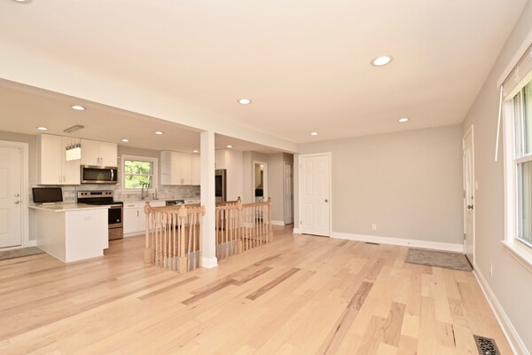This home boasts an open floor plan on the main level, updated floors, stainless steel appliances, island seating in the kitchen, a sunroom, 5 bedrooms, large backyard and so much more.