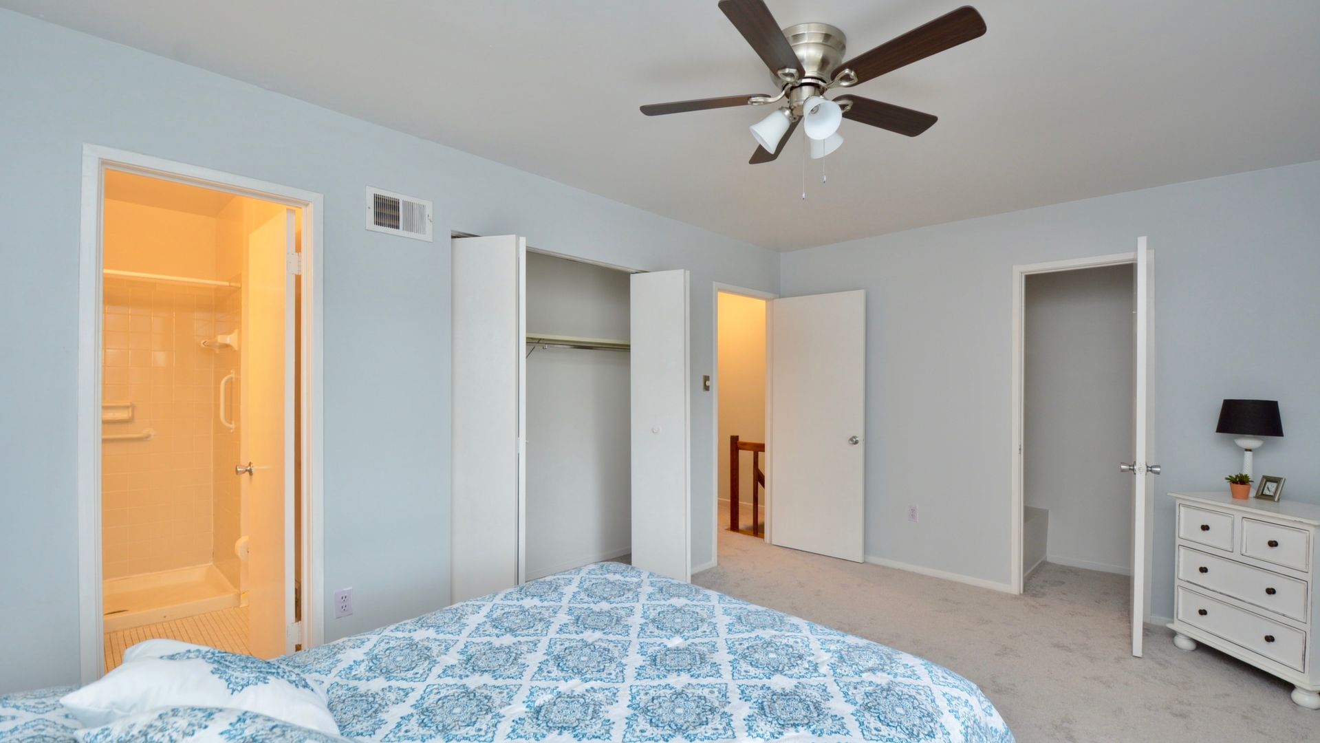 Some of the upgrades in the home include new carpet, fresh paint, updated floors on main level and updated kitchen and baths.