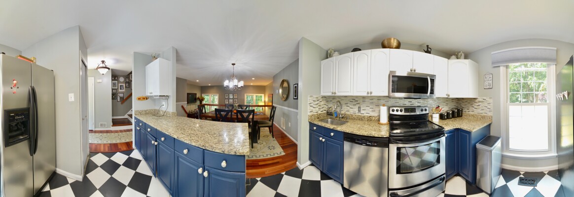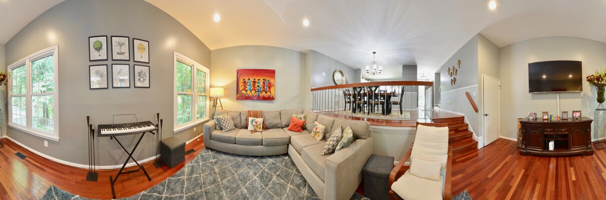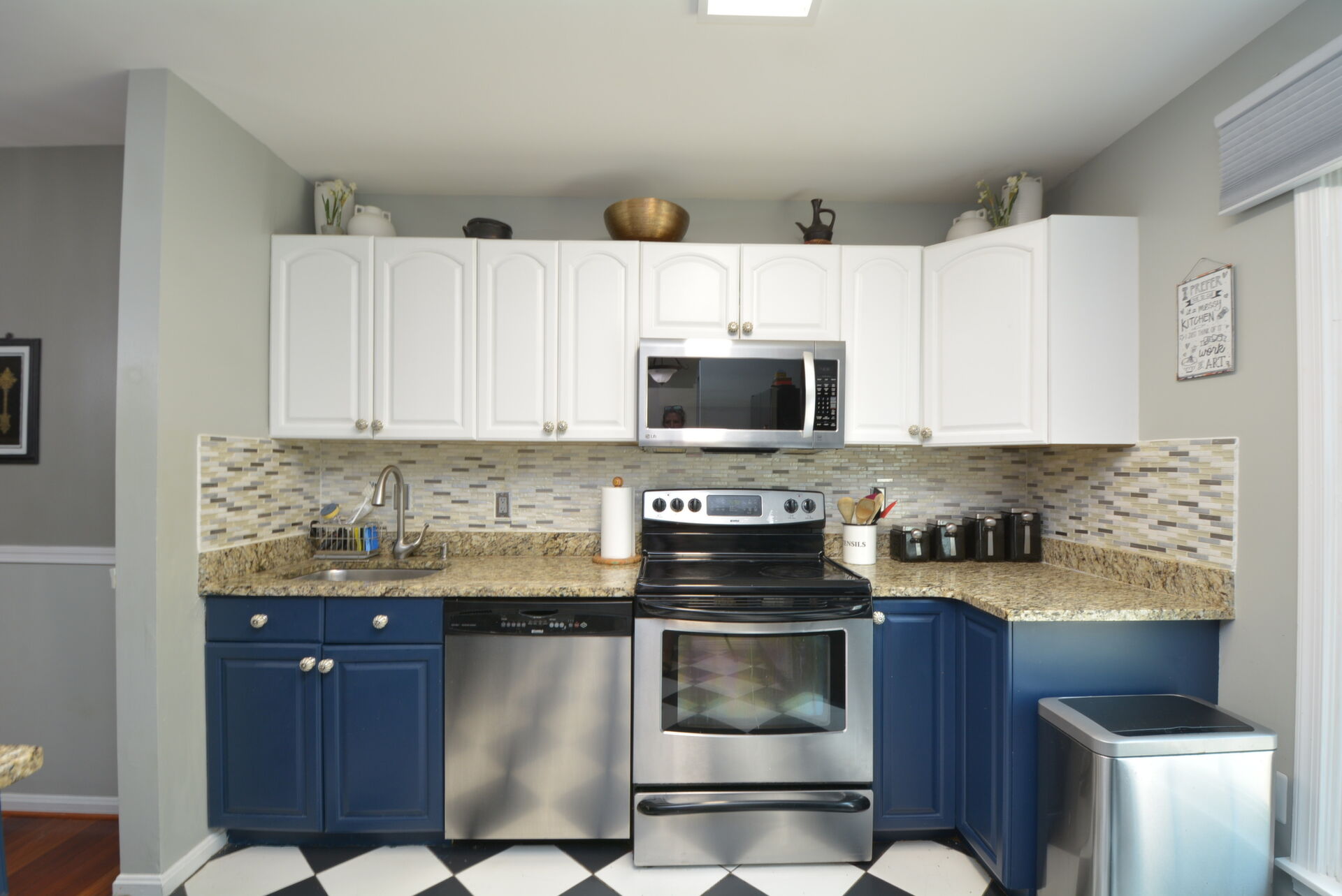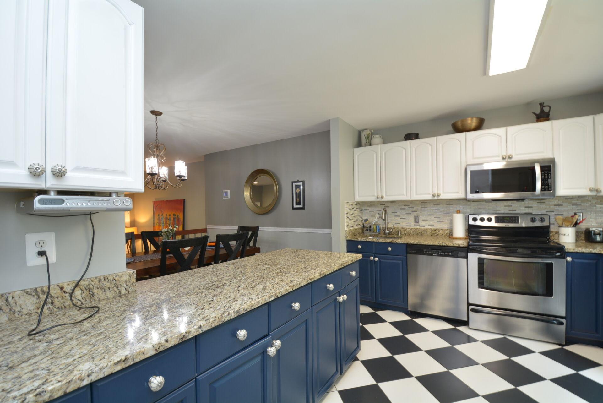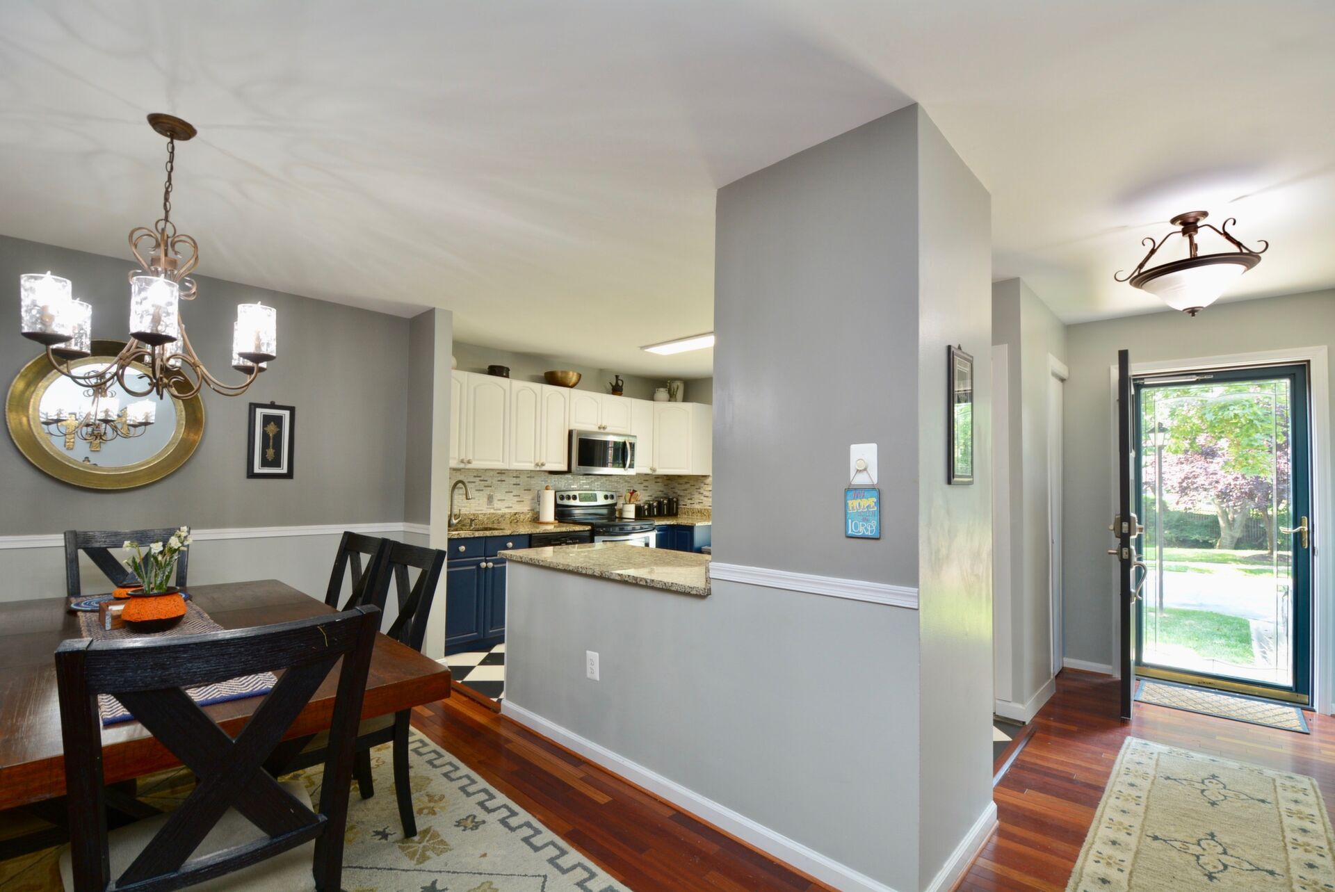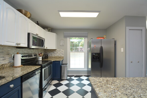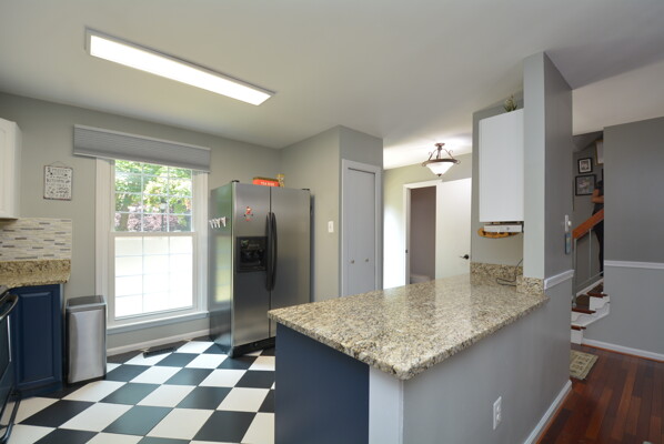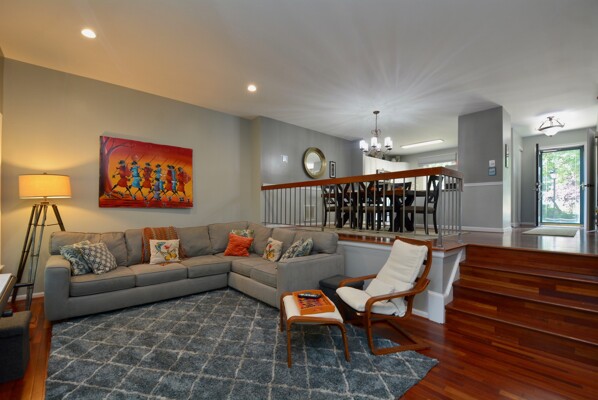 Gorgeous End Unit Town Home features 3 Bedrooms and 3.5 Bathrooms with over 1800 sq.ft. living space and plenty of natural light. Beautiful Hardwood Floors throughout the Main and Upper levels. The Spacious Bright Kitchen boasts modern two-tone kitchen cabinets: white tops and navy blue base; custom tile back-splash; not to mention ample space on the granite counter tops to prepare your favorite dishes Stainless steel appliance. Right off the kitchen there is a Separate, Elegant Dining Room, overlooking Sunken Living Room This spacious living room with great natural light, offers a high ceiling and two large windows with a view to a beautiful two level yard. Upper level features a skylight in the corridor and a generous, Spacious Master Bedroom , which includes , Updated Master Bath, and two: His-and-Hers closets. Two Additional good size Bedrooms and one more Full bath on the upper level. Large two Level basement with room for a Rec-area/Office, Living room, featuring a Cozy Wood-Burning Fireplace!