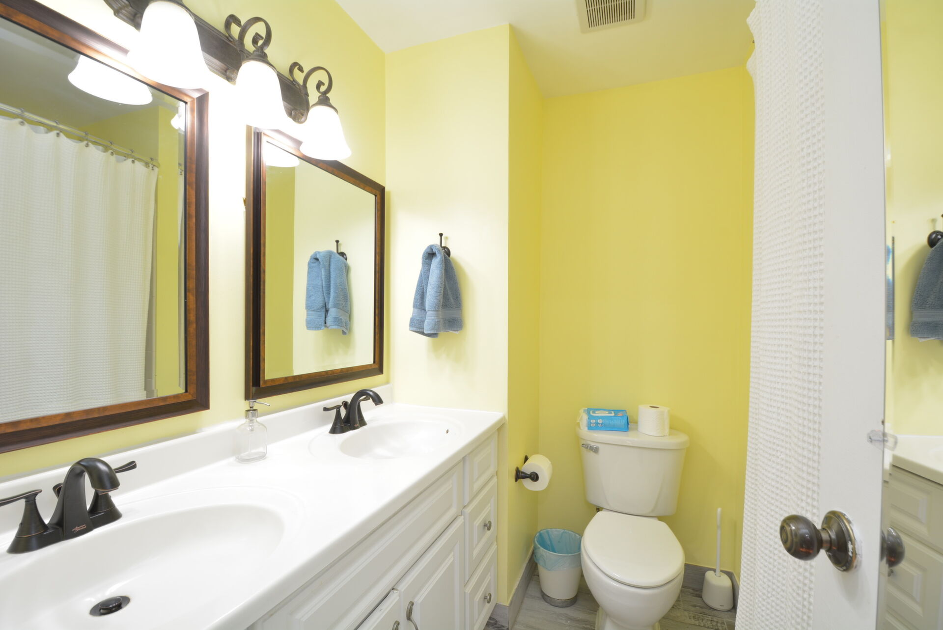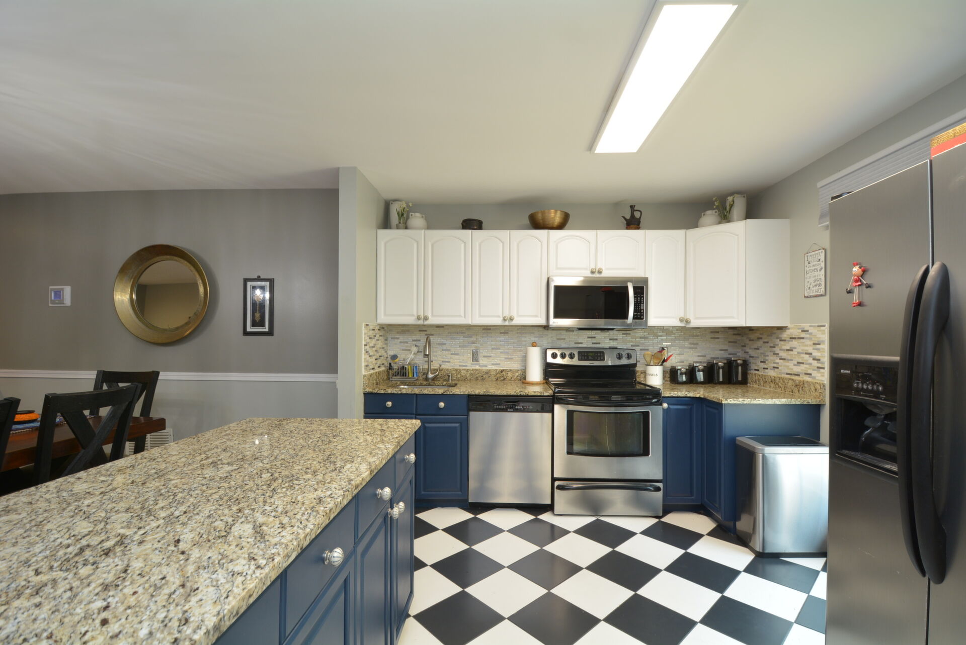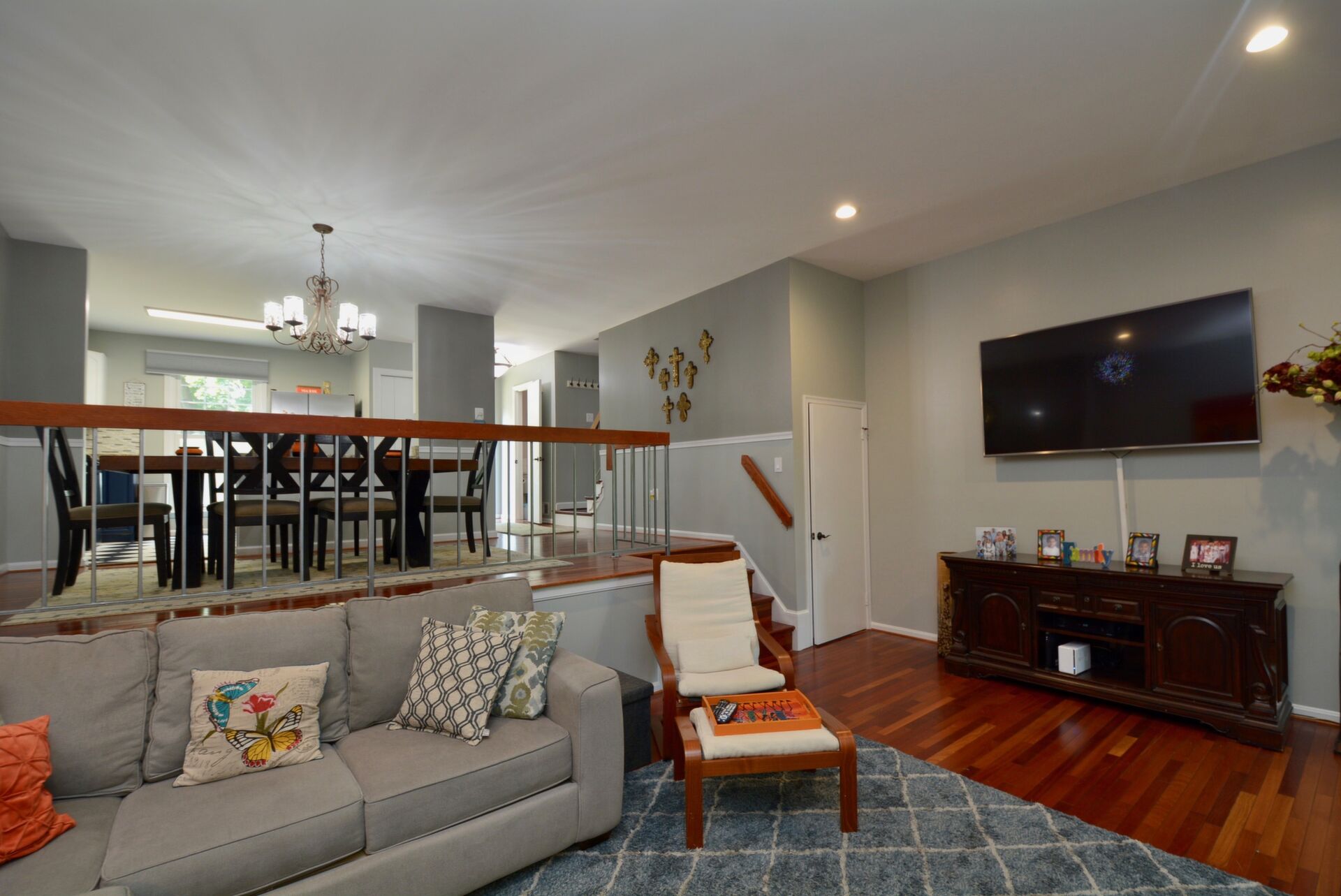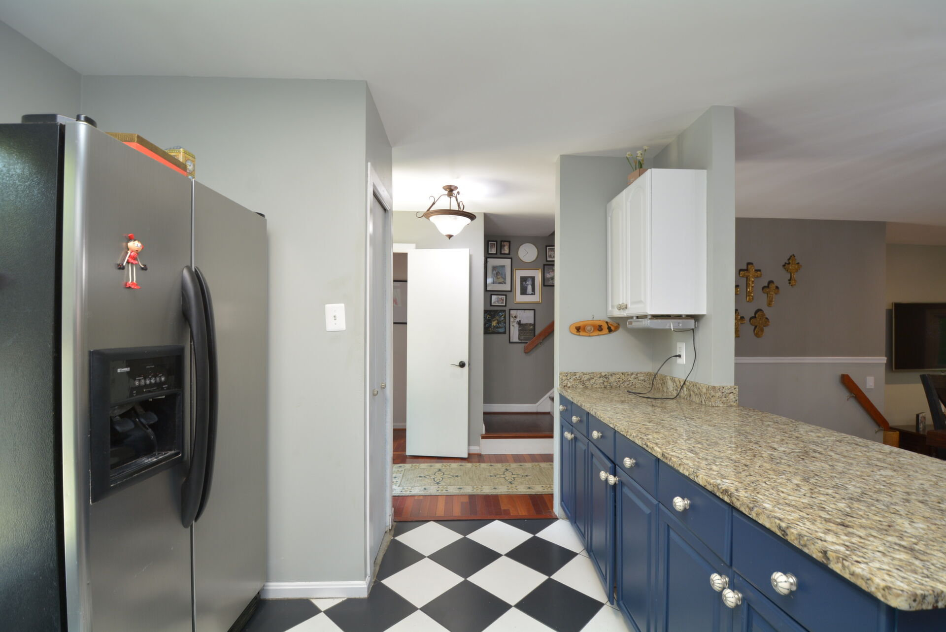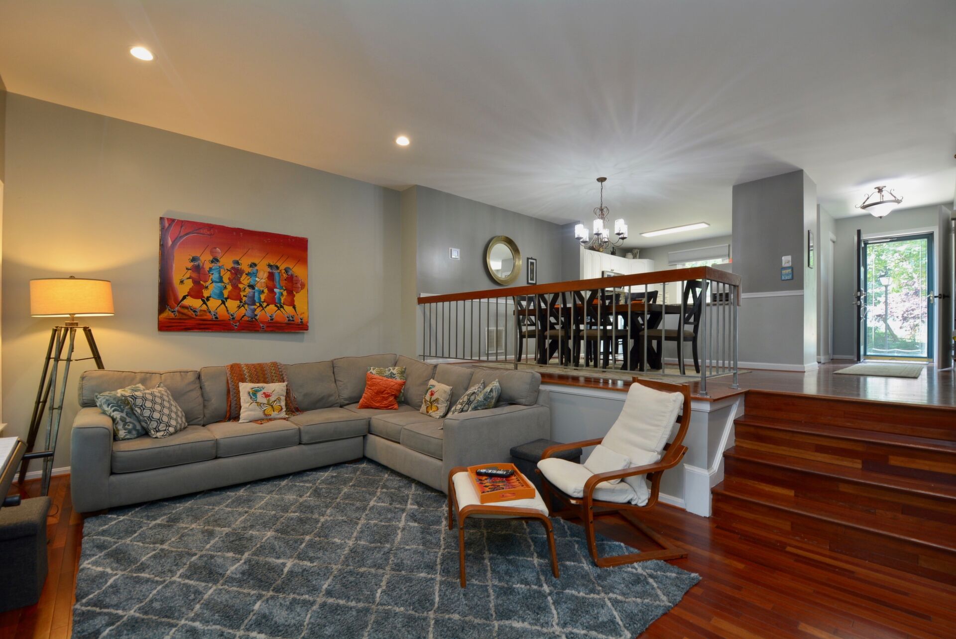 Gorgeous End Unit Town Home features 3 Bedrooms and 3.5 Bathrooms with over 1800 sq.ft. living space and plenty of natural light. Beautiful Hardwood Floors throughout the Main and Upper levels. The Spacious Bright Kitchen boasts modern two-tone kitchen cabinets: white tops and navy blue base; custom tile back-splash; not to mention ample space on the granite counter tops to prepare your favorite dishes Stainless steel appliance. Right off the kitchen there is a Separate, Elegant Dining Room, overlooking Sunken Living Room This spacious living room with great natural light, offers a high ceiling and two large windows with a view to a beautiful two level yard. Upper level features a skylight in the corridor and a generous, Spacious Master Bedroom , which includes , Updated Master Bath, and two: His-and-Hers closets. Two Additional good size Bedrooms and one more Full bath on the upper level. Large two Level basement with room for a Rec-area/Office, Living room, featuring a Cozy Wood-Burning Fireplace!