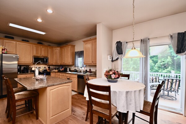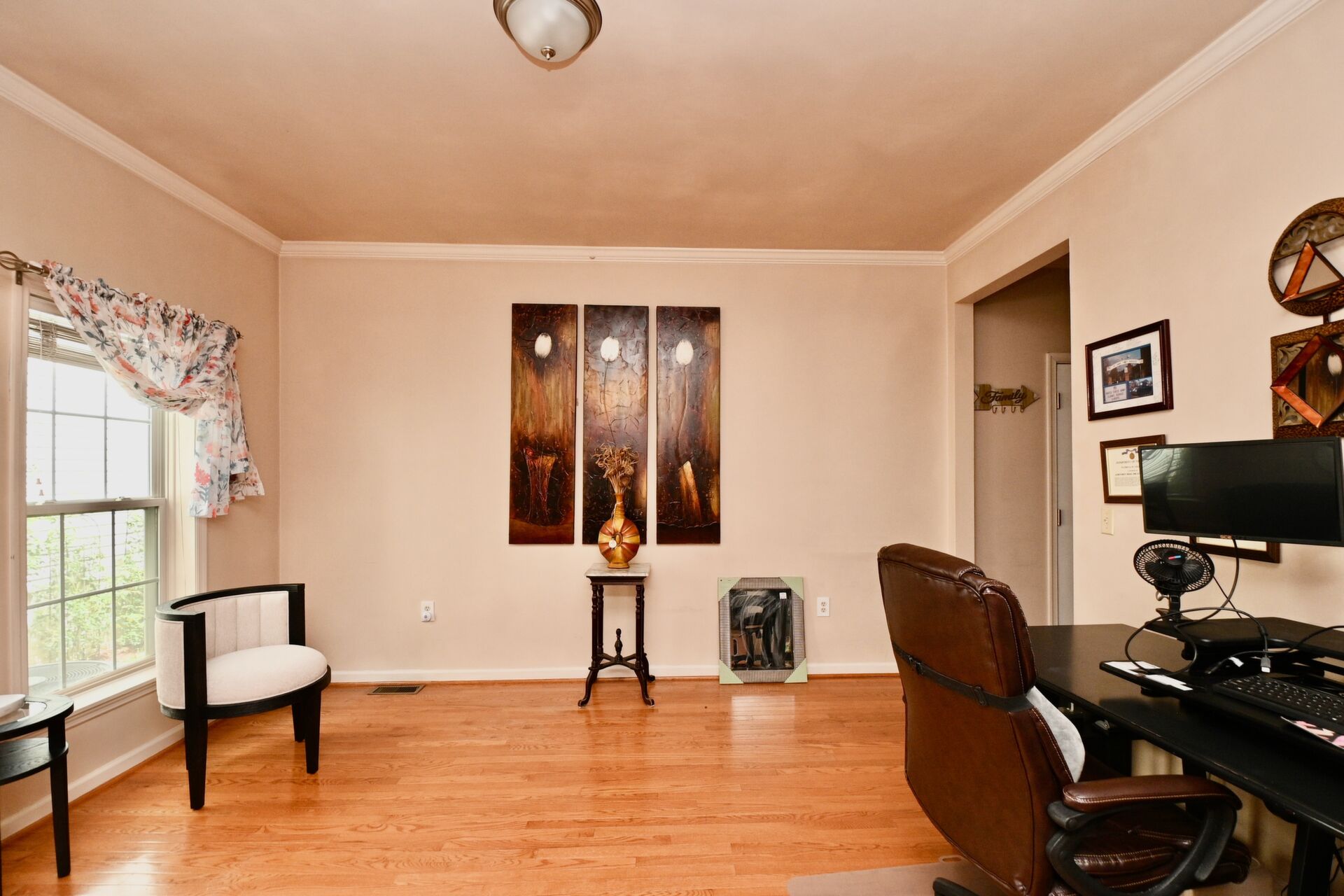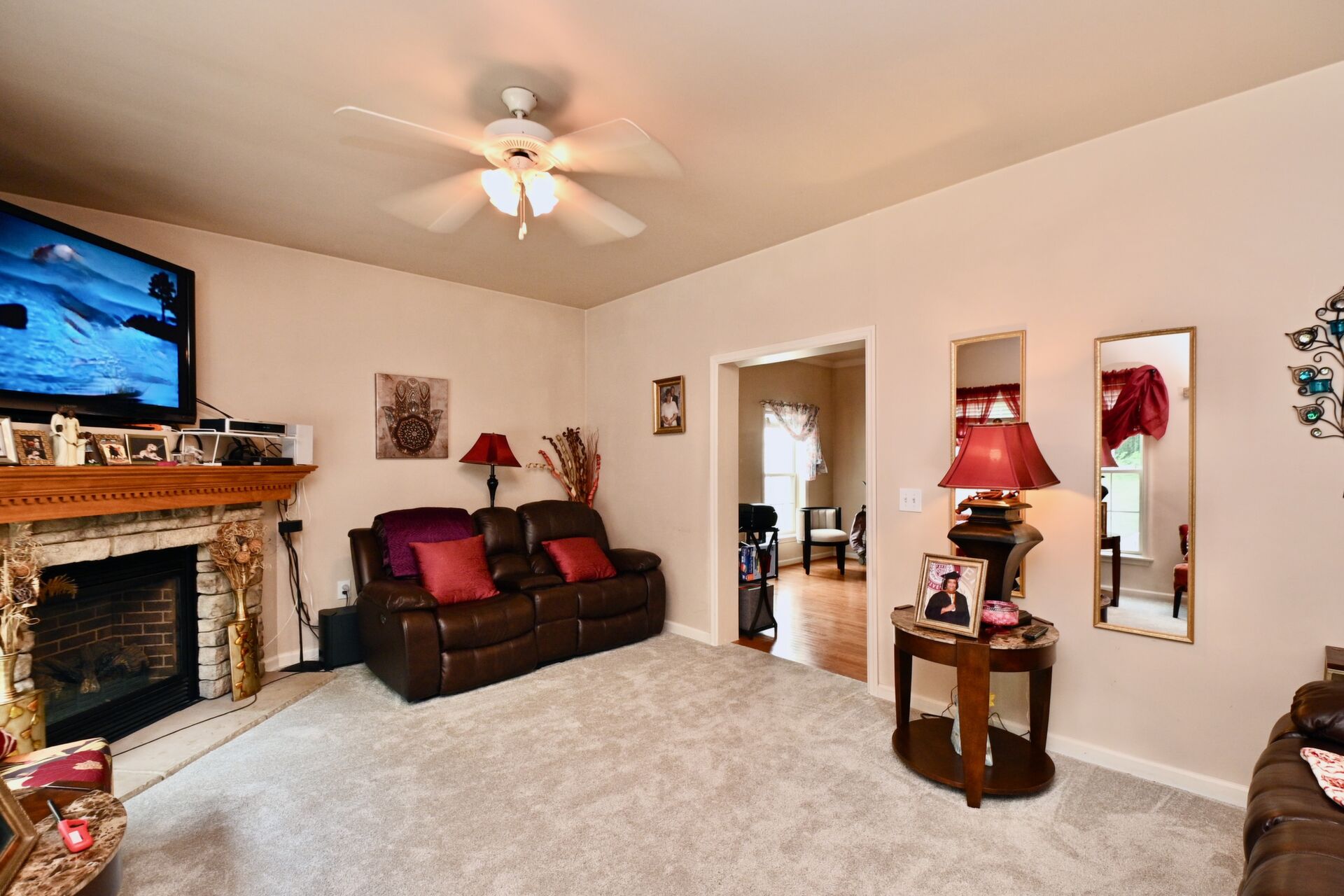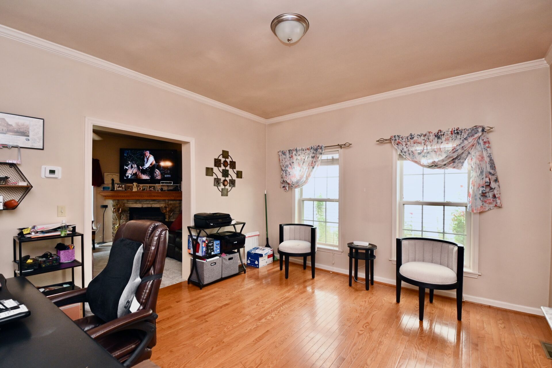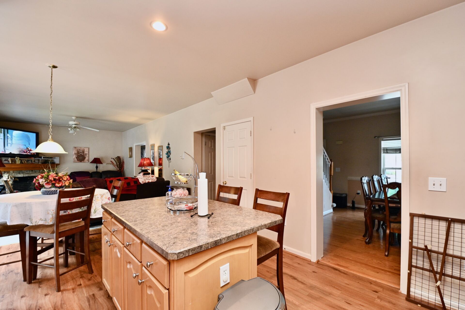 This home boasts hardwood floors, crown molding, cozy fireplace in the family room, lower level kitchen and so much more.