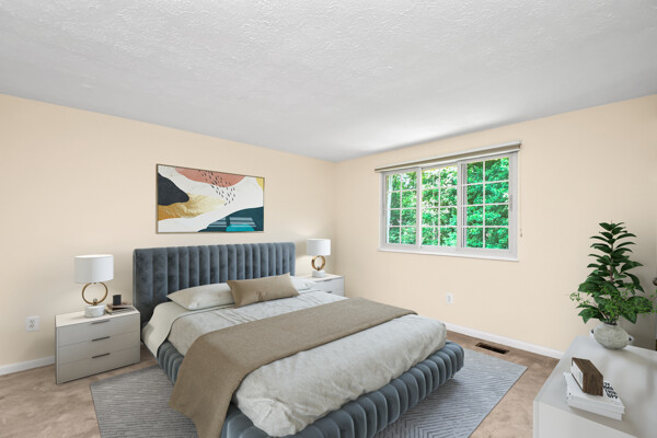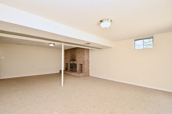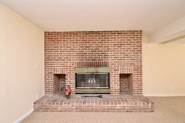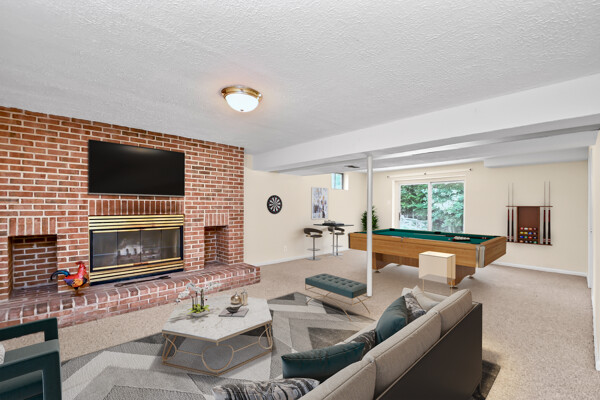 This home boasts a large living/dining room, kitchen that opens to your family room, primary bedroom with walk-in closet and private bath and a recreation room with a brick fireplace.