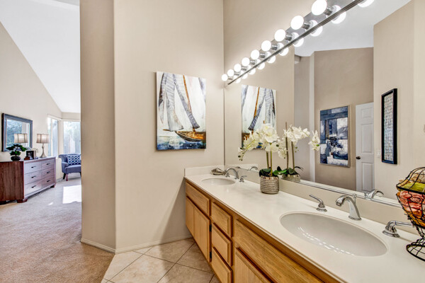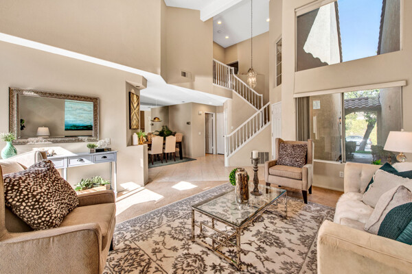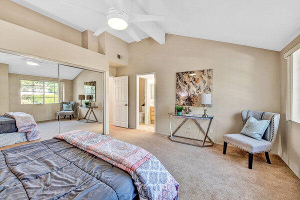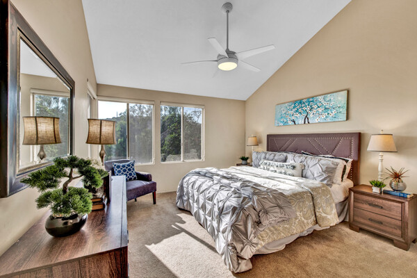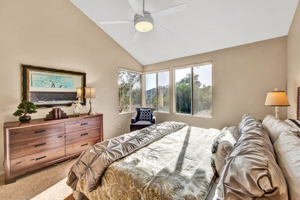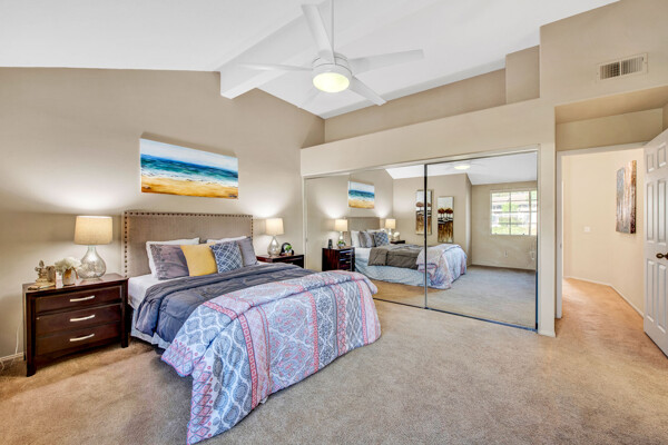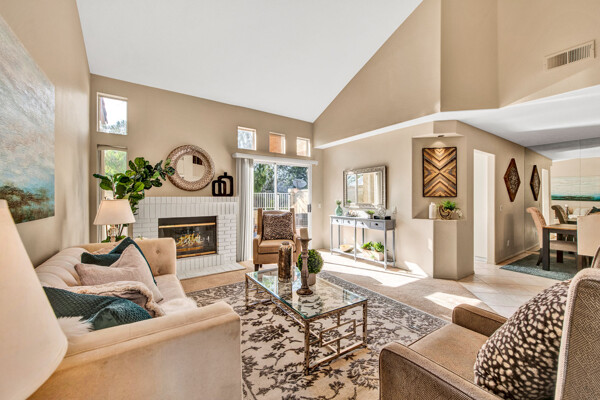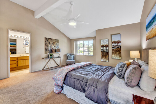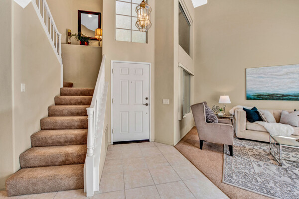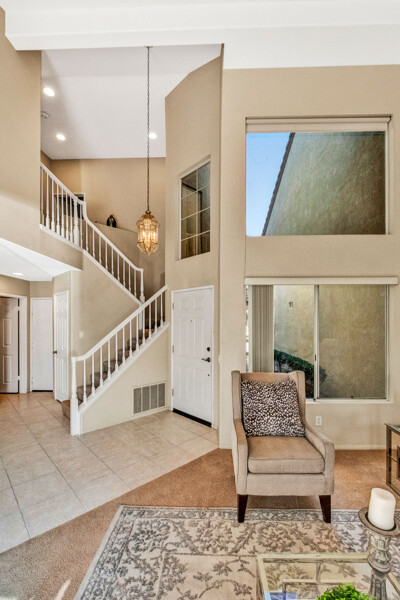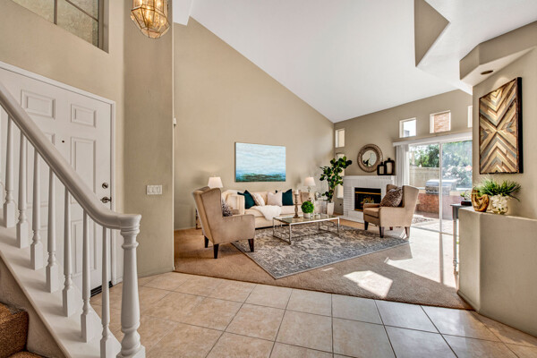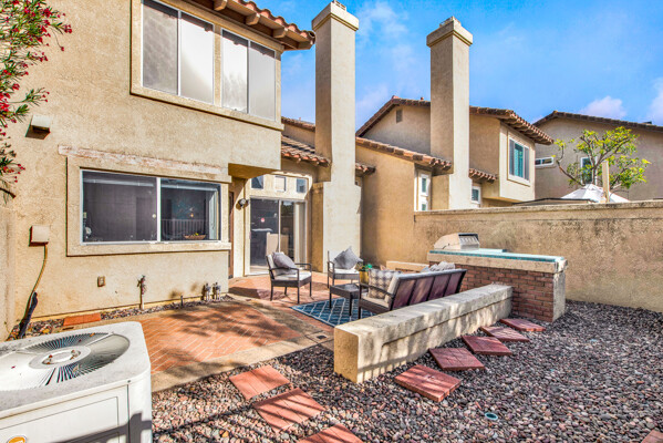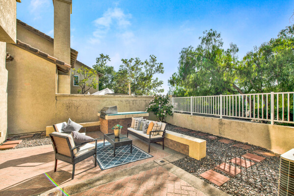 Lifetime opportunity to own near Tijeras Creek Golf Course! Turnkey 2 story townhome with 2 master bedrooms, 2.5 bathrooms, and a 2 car attached garage and driveway. Enter the inviting, airy home with soaring vaulted ceilings, beautiful tile and carpeting downstairs, a cozy fireplace, Very Large private patio, and many windows providing gorgeous sunset canyon views. Living room and dining cove offer a generous open layout, while neutral paint create a gorgeous clean palette. Eat-in kitchen White Cabinets, and White Granite counters, black appliances, and stainless steel Refrigerator. Kitchen has a door leading directly to patio with beautiful views—Built in BBQ for Dinners with family and friends. garage includes Storage Racks and overhead storage, plus a brand new hot water heater. This well-cared home is just steps away from the Tijeras Creek Clubhouse, incredible hiking trails, mountain views on walking and biking paths, community pools and hot tubs, tennis courts, and parks. Low taxes, no Mello Roos, distinguished schools. Close to RSM Lake, restaurants, shopping, theatres, freeways, toll roads, and all this vibrant community has to offer. Your peaceful sanctuary awaits.
