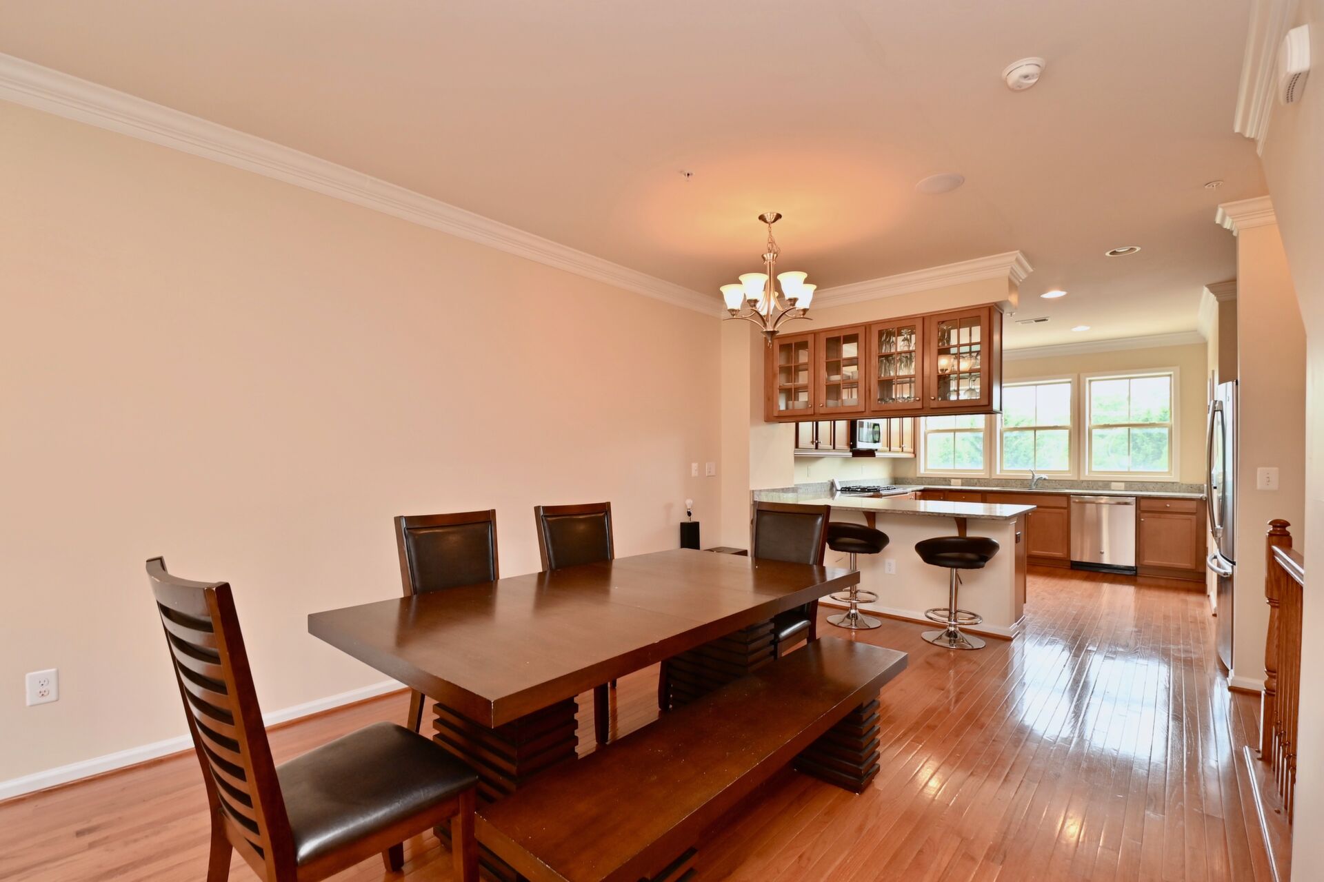 Enjoy open floor plan concept on main level, hardwood floors, crown molding, upper level family room and a great rooftop deck to relax on after a long day.
