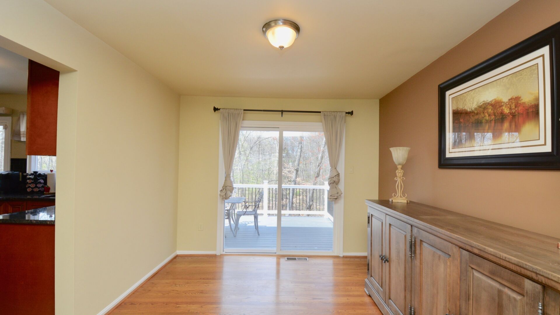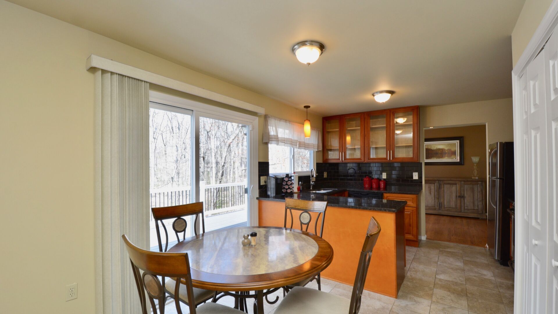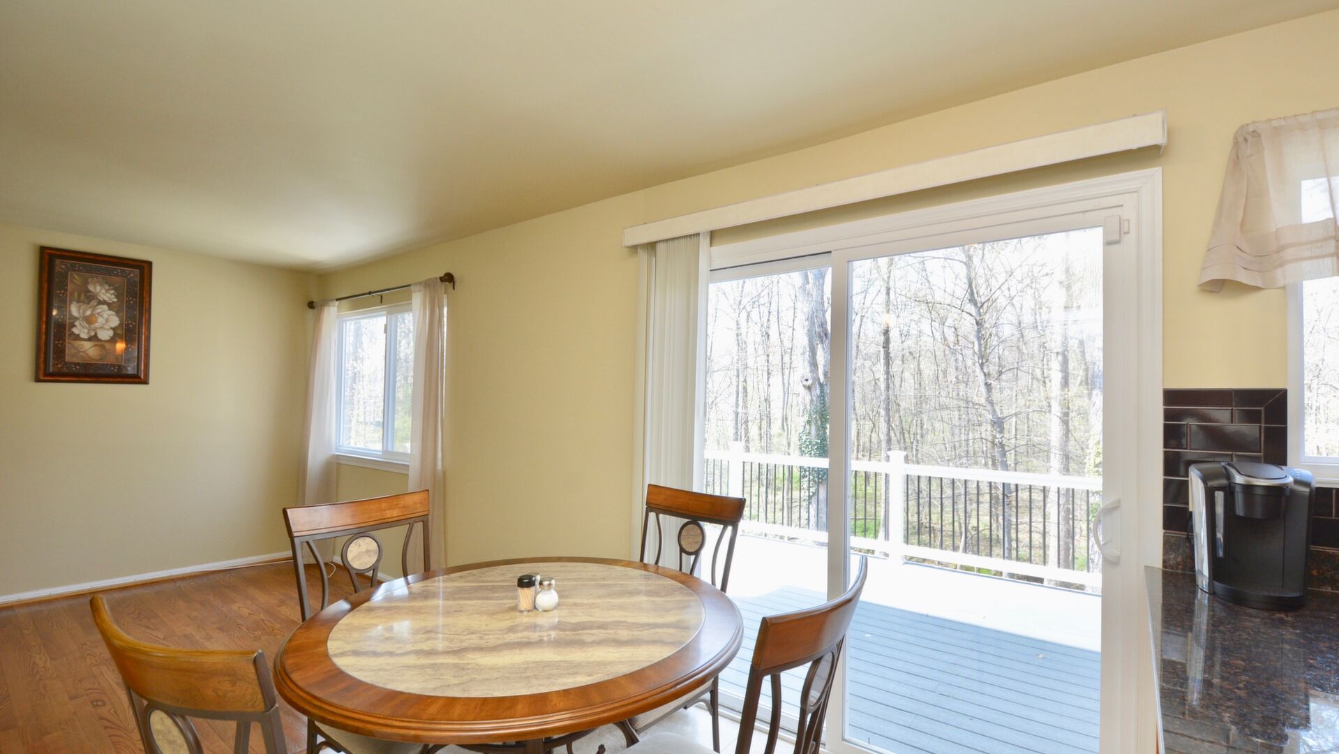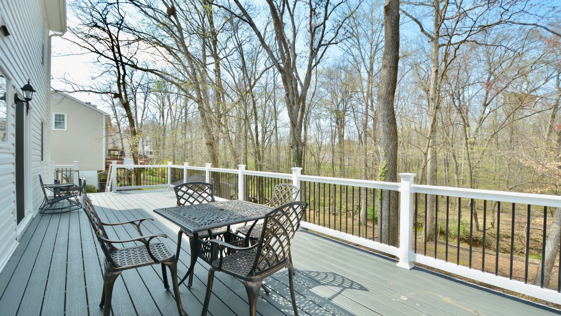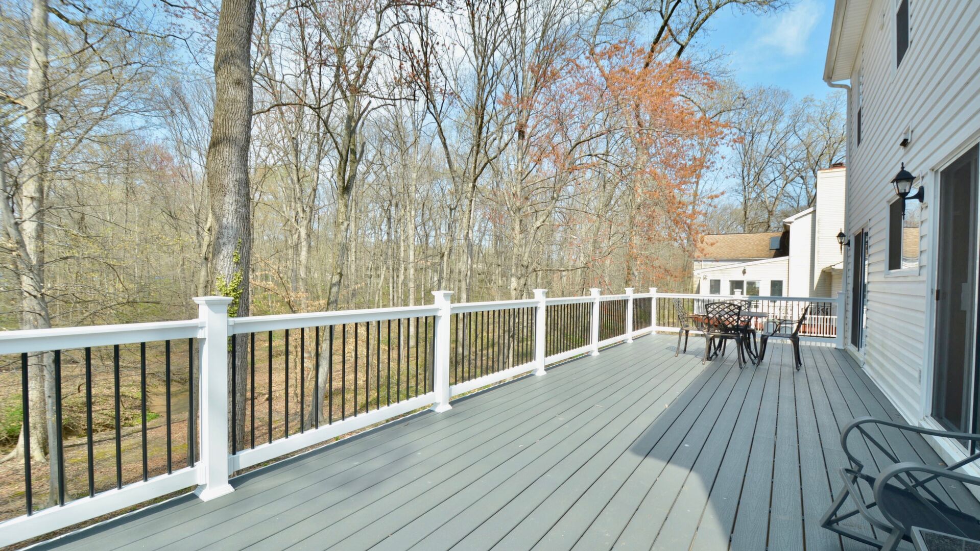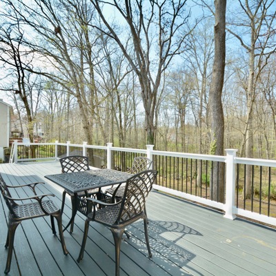 Come home after a long day and relax on your large trex deck overlooking a wooded oasis!