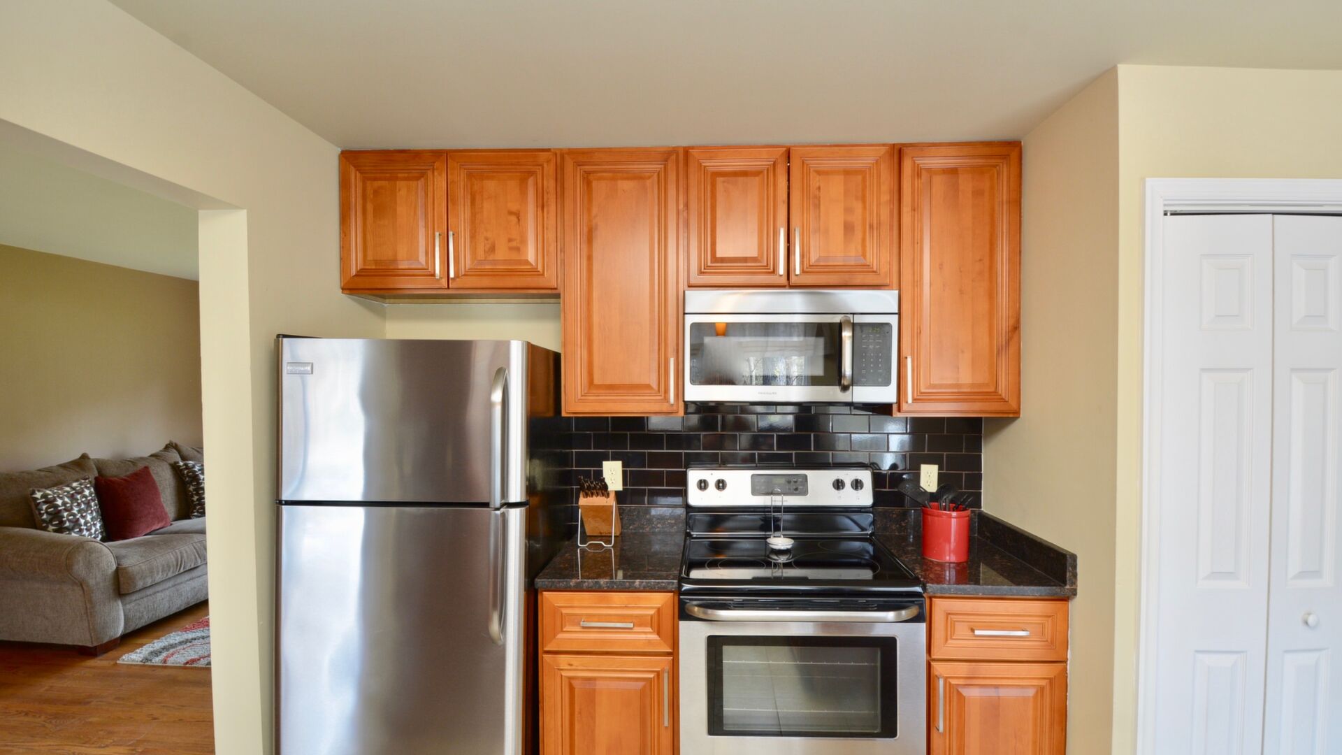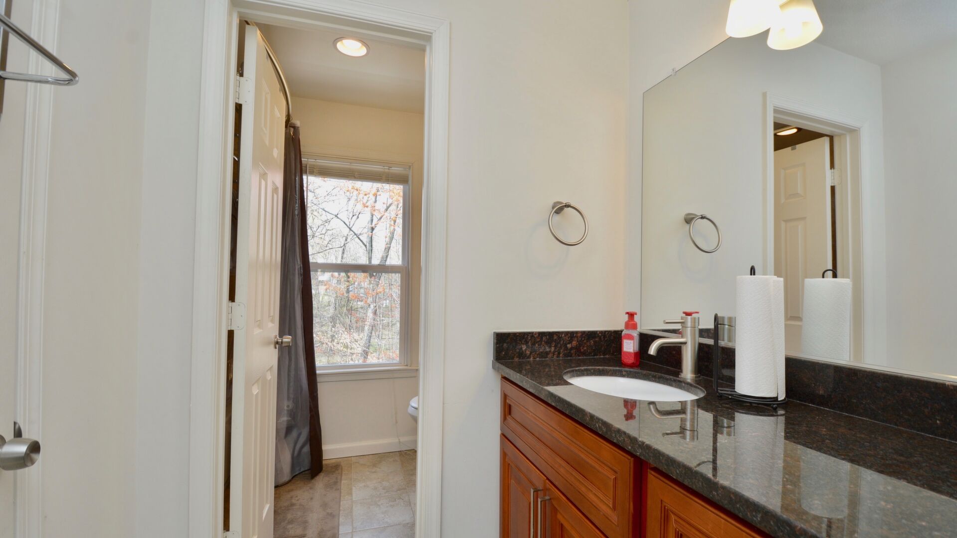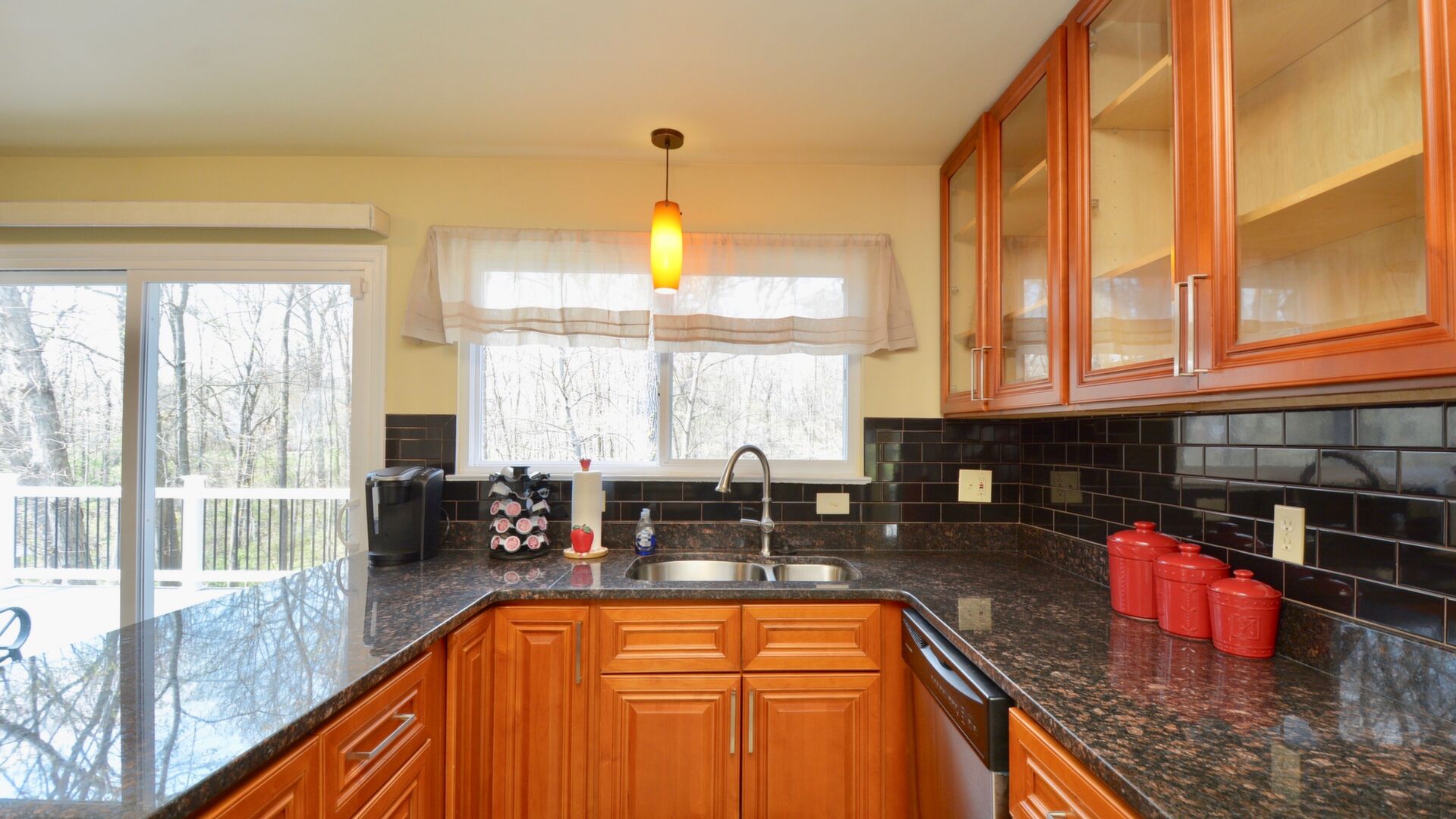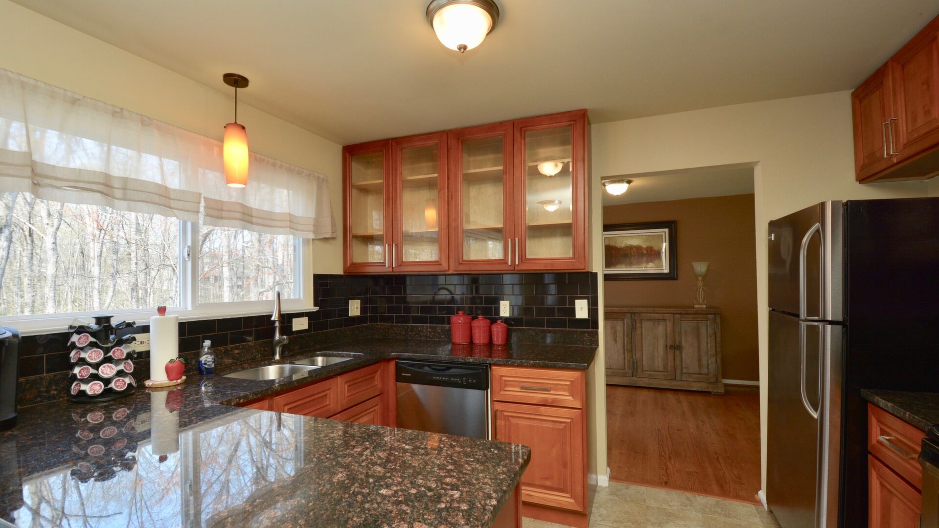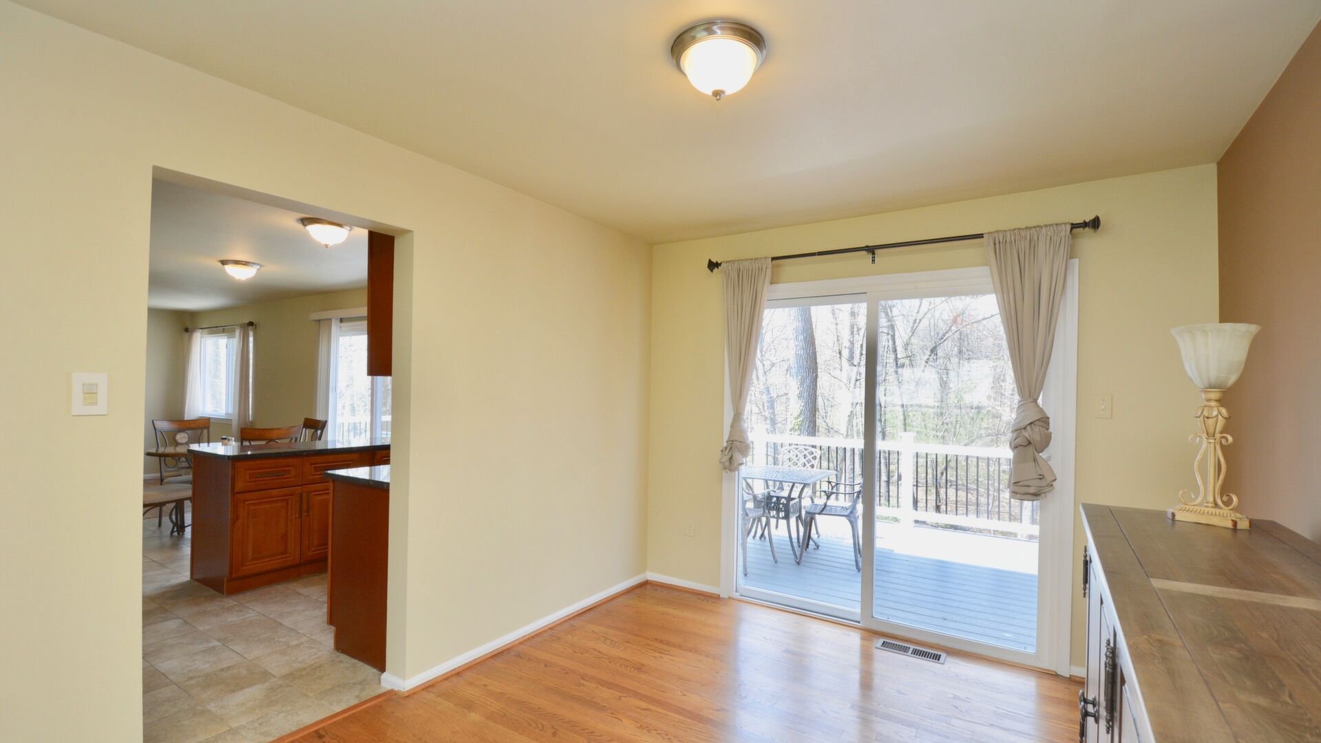 Come home after a long day and relax on your large trex deck overlooking a wooded oasis!
