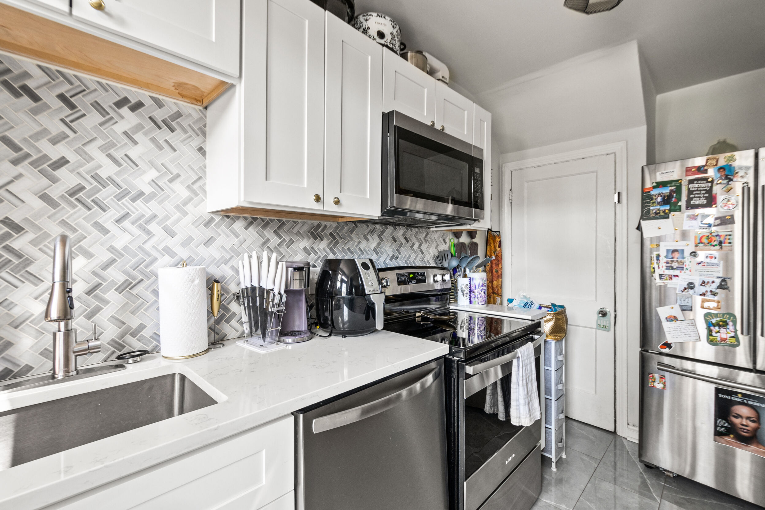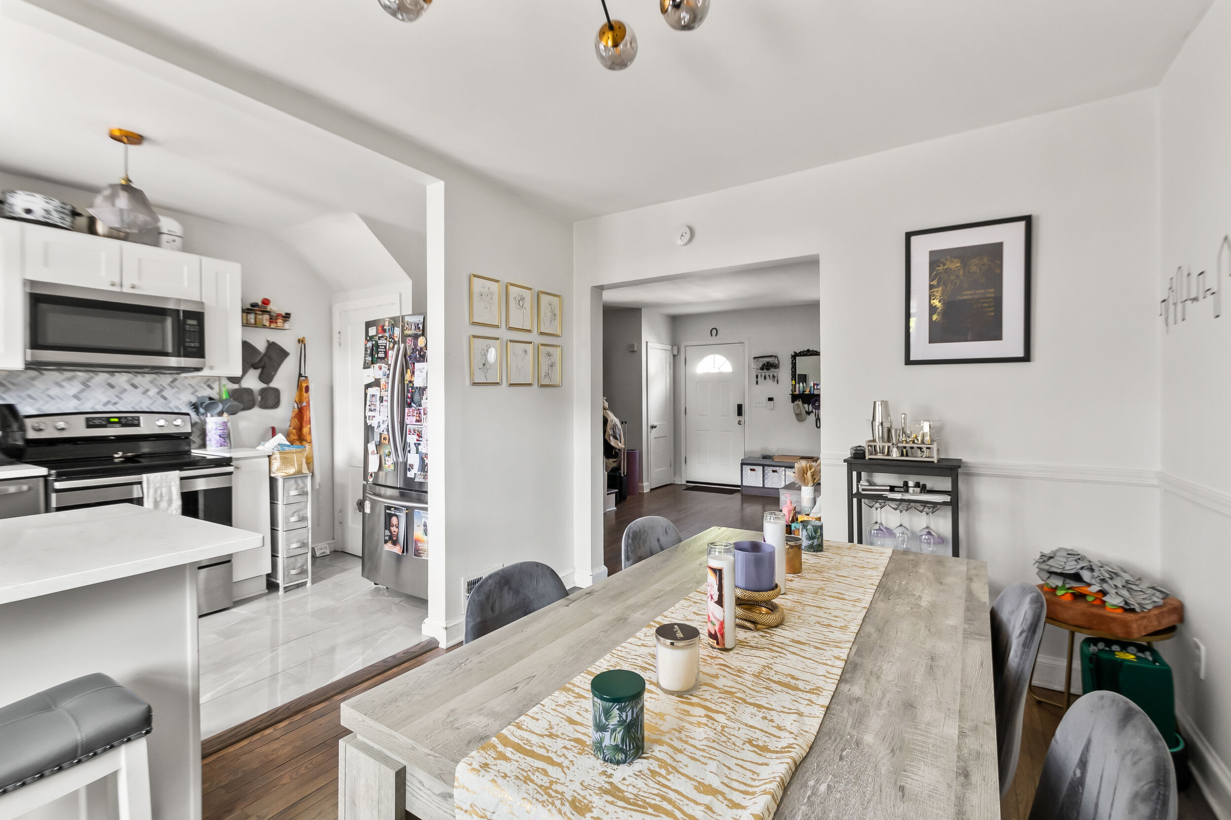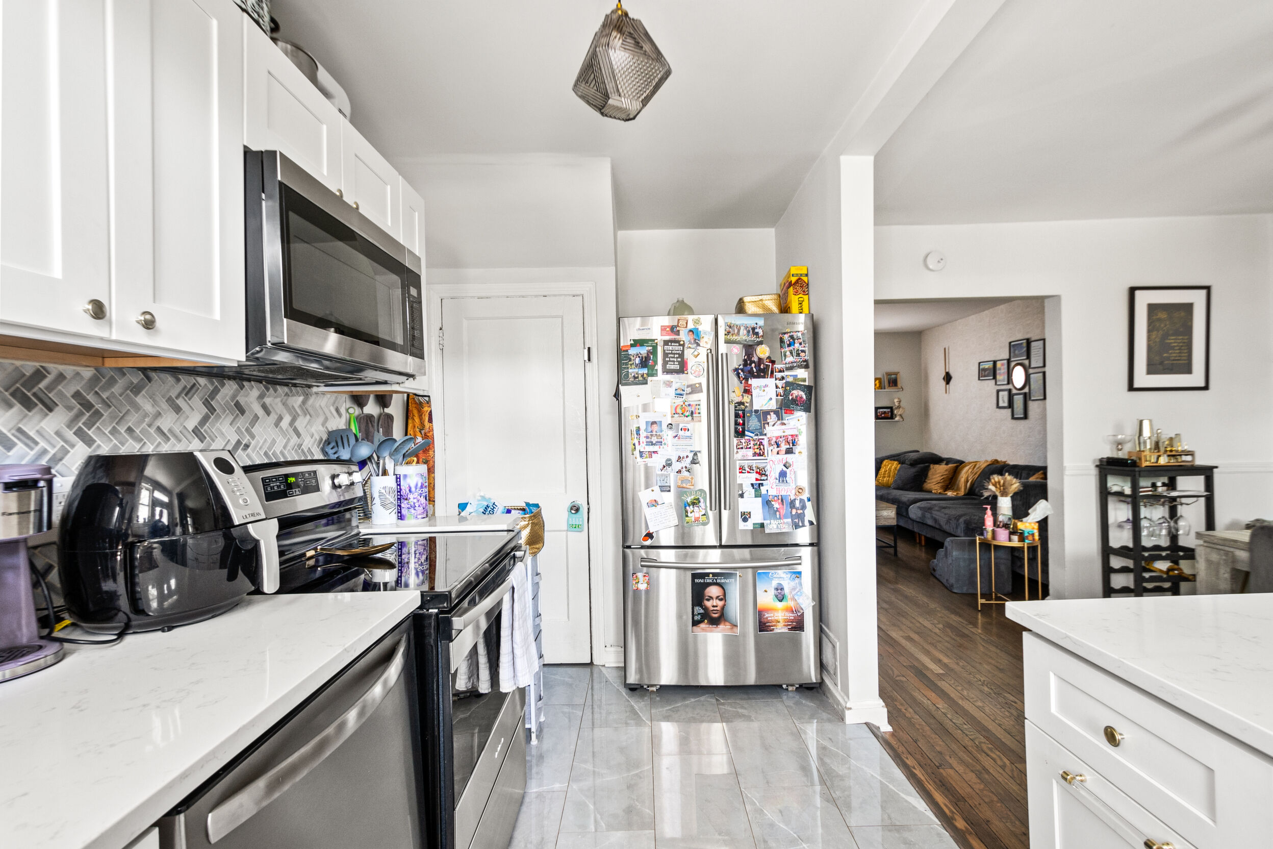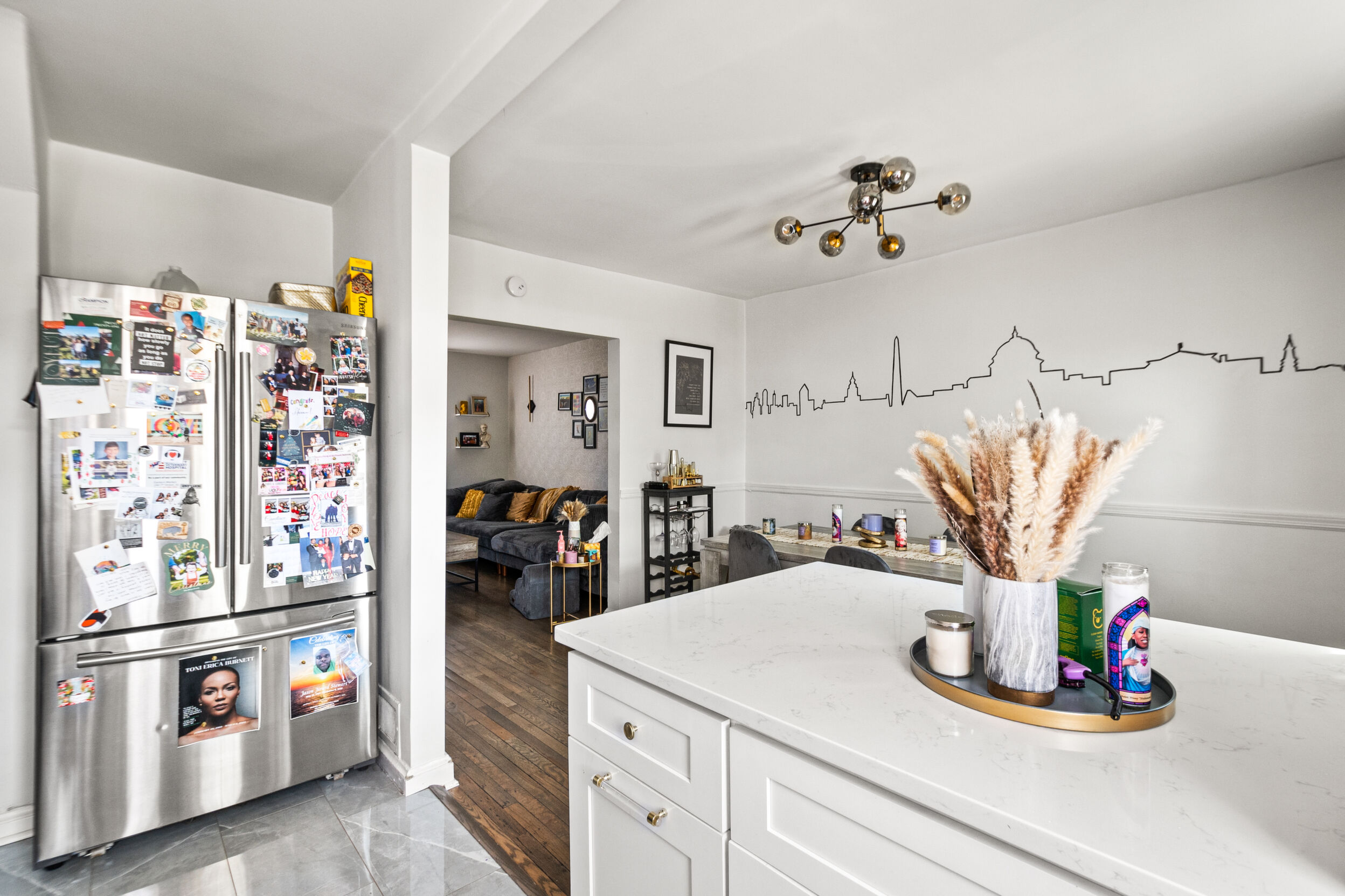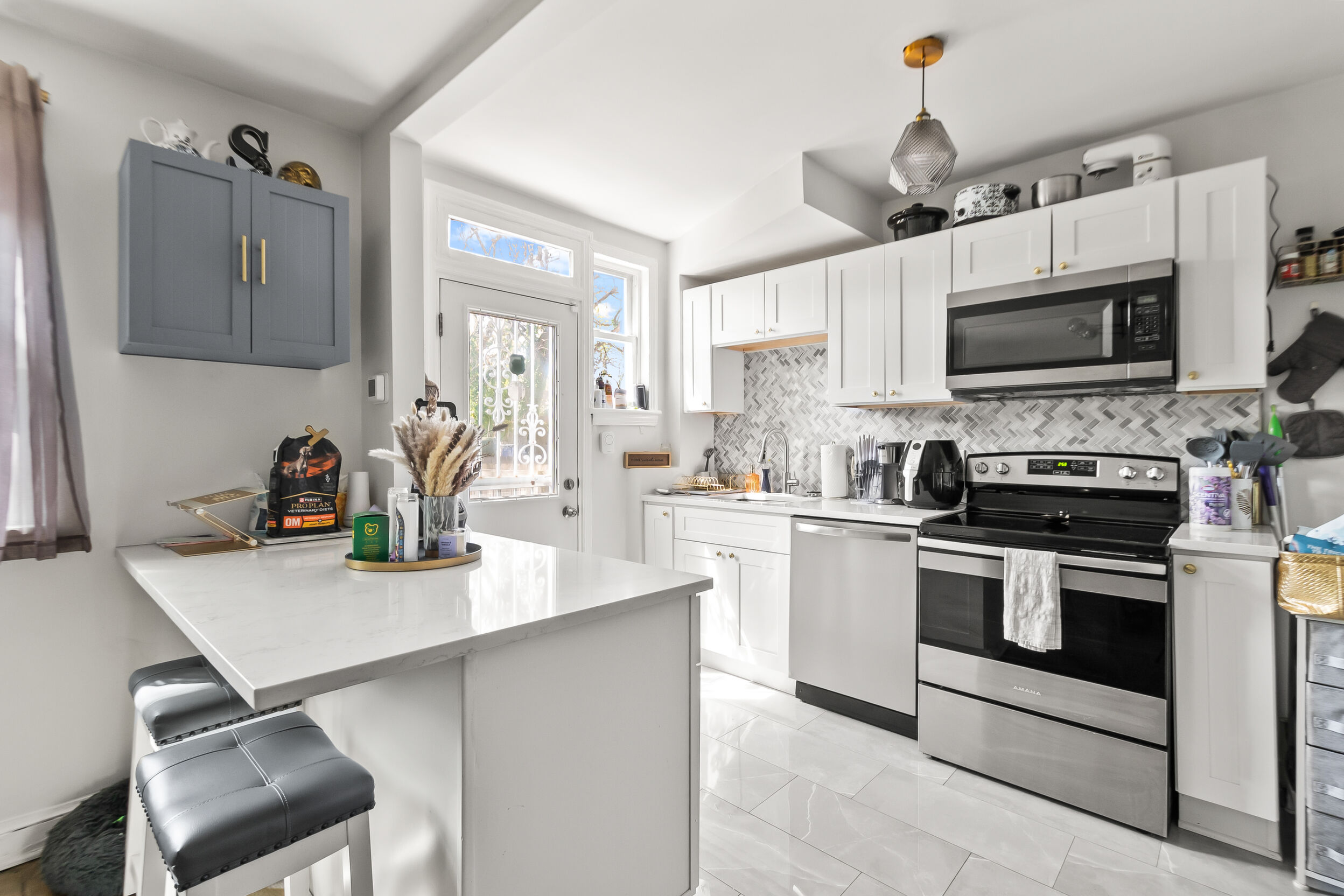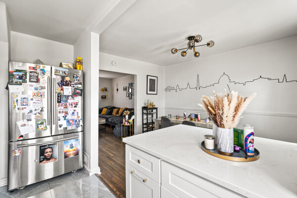 The kitchen boasts a stylish island with seating, ideal for casual meals or morning coffee. The comfortable bedrooms provide a peaceful retreat after a long day in the bustling city.