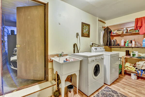 bedrooms upstairs with 2 bathrooms. Legal 2 bedrooms suite downstairs (rented month to month). Enclosed deck, double garage parking, large