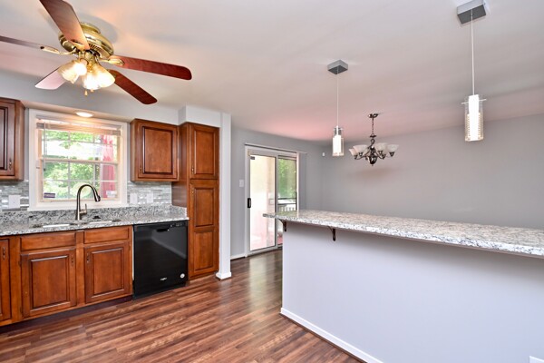 This home features updated flooring, new light fixtures, large living/dining combination, large recreation room with a cozy fireplace and so much more.