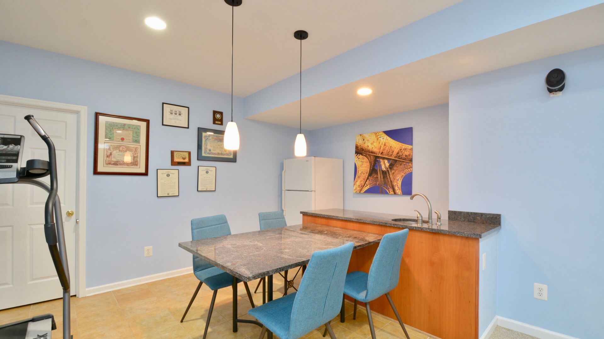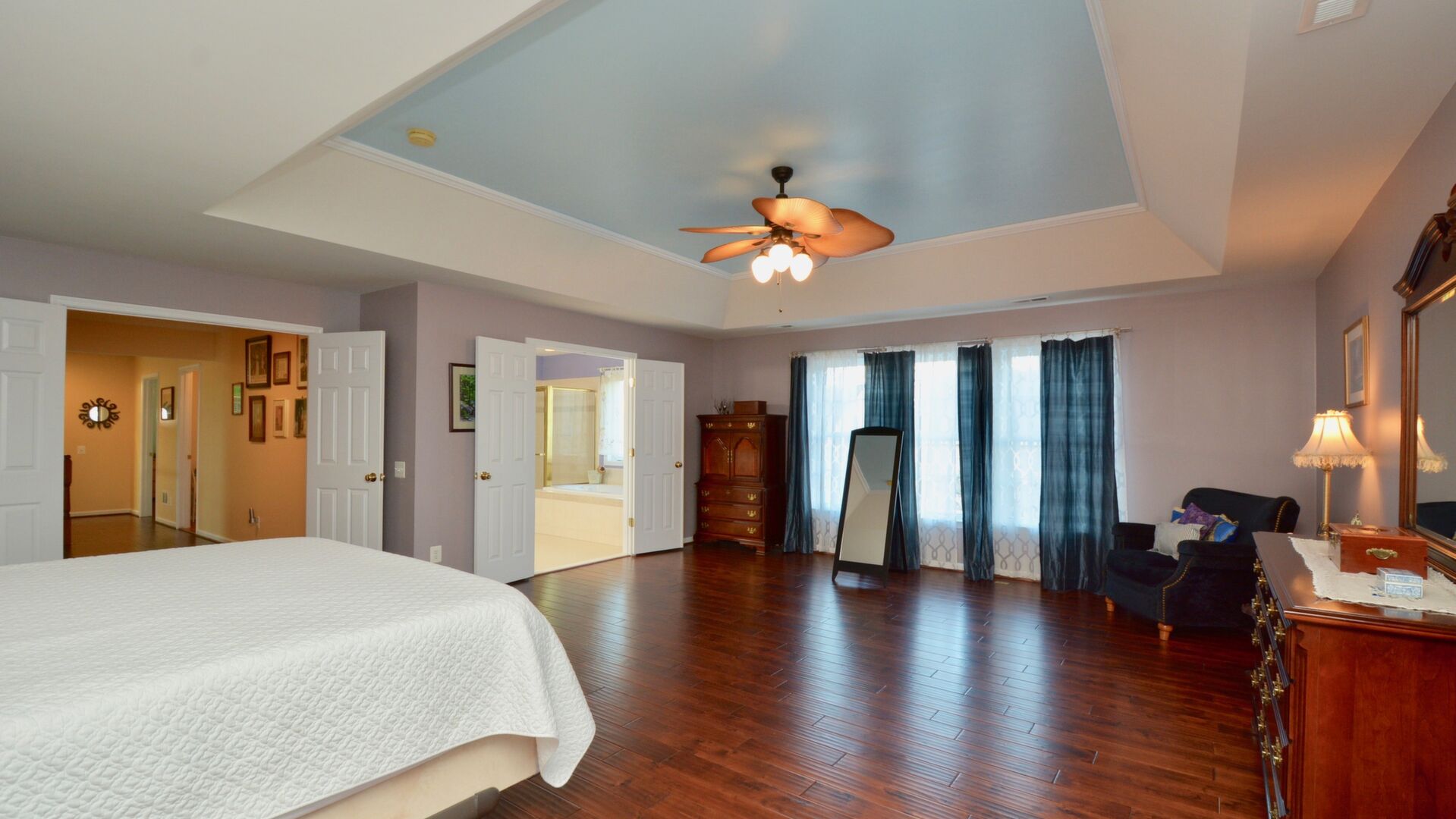 and a composite deck. The Master Bedroom has tray ceiling and a walk-in closet that is the length of the room. The rec room has a walk-out and a wet bar. This home has it all!