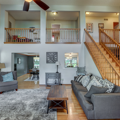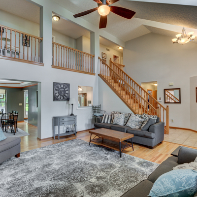 BEST VALUE IN THE NEIGHBORHOOD: Well maintained home with all the amenities; updated kitchen includes quartz counter tops, back splash and new cabinets. This home is beautiful featuring a first floor master, laundry, dining room, eat in kitchen and large vaulted great room with gas log fireplace. Wood flooring shines in dining room, great room and the impressive staircase with railing running the length of the loft area that leads to 3 nice sized bedrooms (two have walk-in closets). Granite counter tops in bathrooms with tile running in kitchen area, entryway and all bath