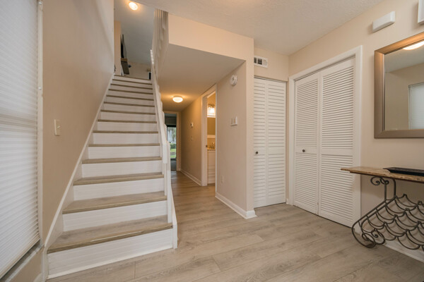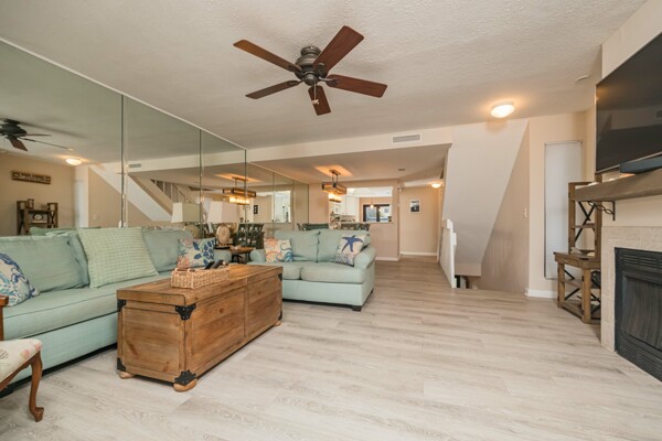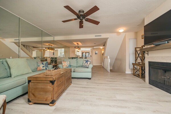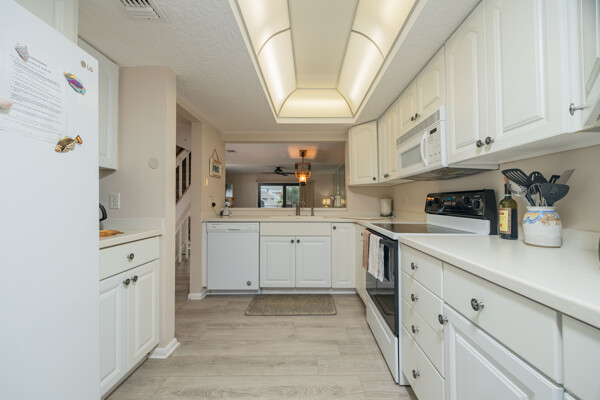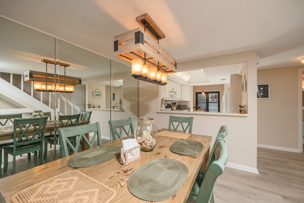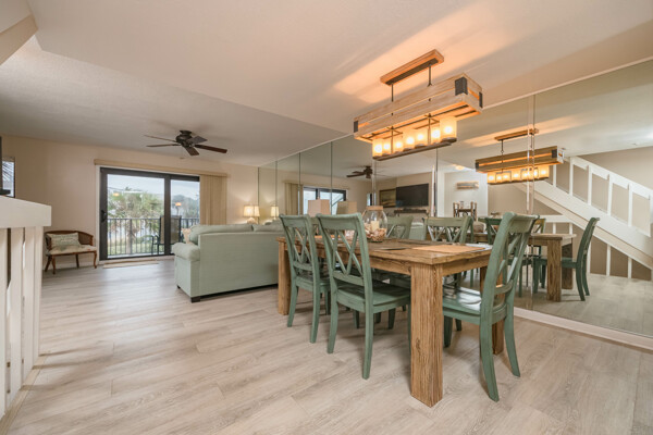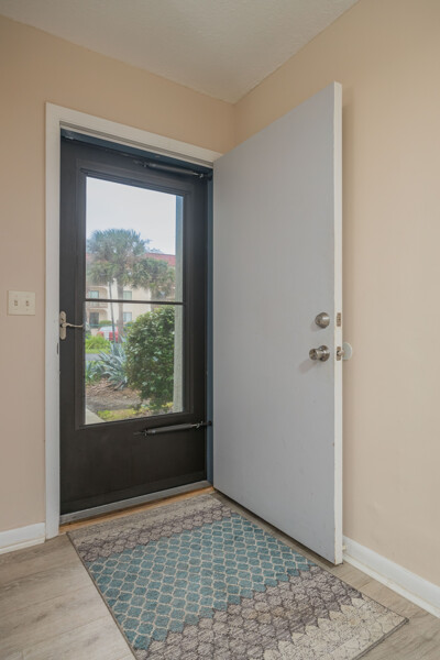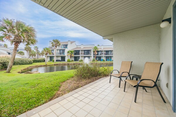 Rare Sea Winds end unit condo with stunning ocean views from all 3 balconies! 3 bedrooms, 3.5 bathrooms, 1600 square feet, AND a 1 car garage. Only steps away from sand and one of the closest possible units to the private community beach access. This condo was extensively updated in 2018 with luxury vinyl flooring, new carpet, paint, bathroom vanities, light fixtures, and more. With 3 stories, this condo has exceptional ocean views and feels more like a home! Start your day by watching the sunrise from your balcony or patio, overlooking both the ocean and beautiful lake views. On the ground level there are 2 bedrooms, 2 full bathrooms, laundry room, and foyer. On the second level, you will find the kitchen, living room, dining space, and half bathroom. Saving the best views on the third level for the master bedroom and bathroom with a walk-in closest! Sea Winds is a highly sought after community with only 80 available units, which allow short term rentals, and has desirable amenities: pool, jacuzzi, clubhouse, beach access, tennis, and a gated entrance. Furnishings are negotiable to make this property completely turn key! Enjoy this property as home or utilize the option of making this your newest rental property. This one is truly a rare find within all of St. Augustine Beach!