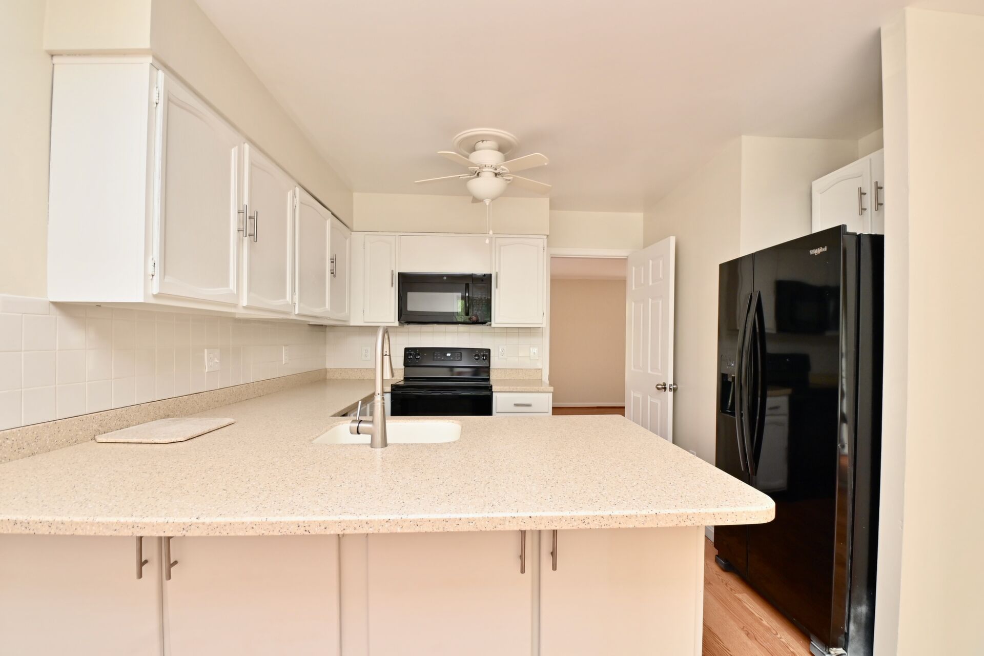 This home features a beautiful kitchen that has island seating and opens to a large breakfast nook, your living room/dining room has hardwood floors, primary bedroom features a private bath, and the recreation room is finished with a cozy fireplace that opens to your large backyard.