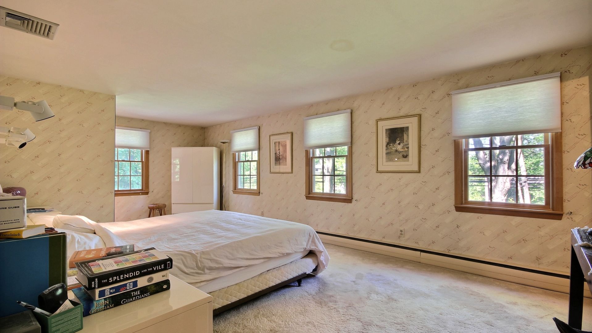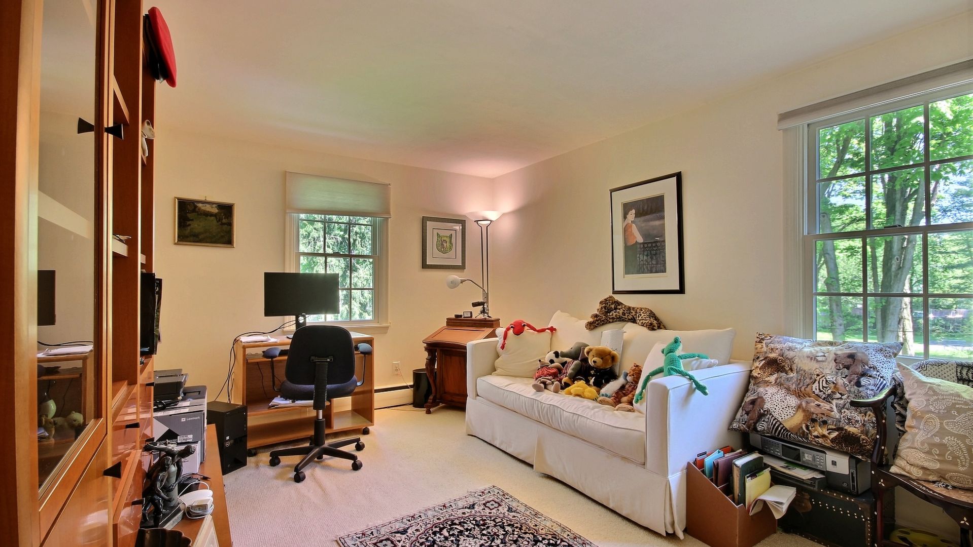 Beautiful set in a park-like setting on the private one-acre property. This four-bedroom, 2.5 bathroom has a great-sized entrance hall that leads to a family room or office with a fireplace, great-sized living room, and dining room with large windows looking out on the magnificent yard, and then you can go to the glassed-in sunroom. Upstairs there are three great-sized bedrooms, a full bathroom, and a Master bedroom with its master bath. The basement is unfinished with lots of possibilities and a separate entrance to the two-car garage. Close to Transportation Norwood's downtown and a great public golf course. Stop looking for a new HOUSE. Your dream HOME is now on the market.