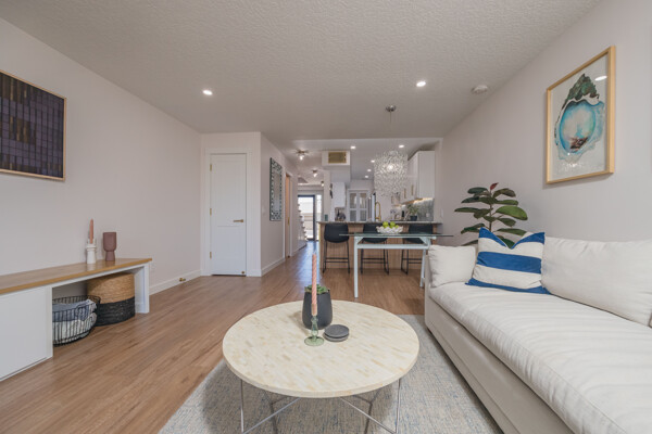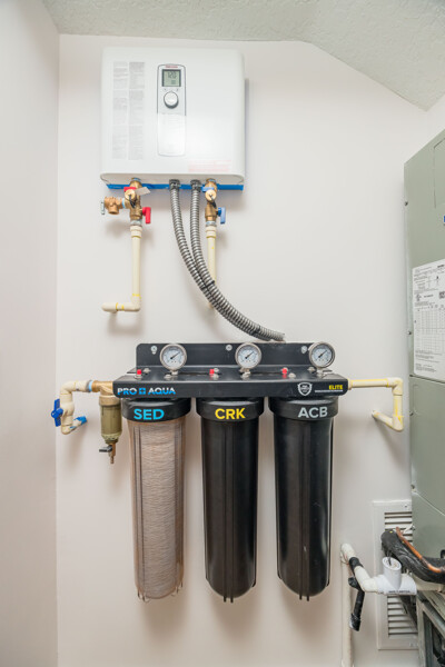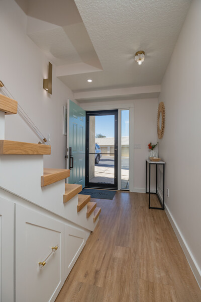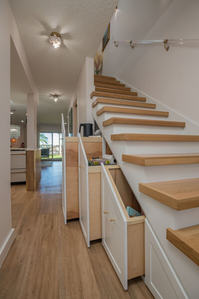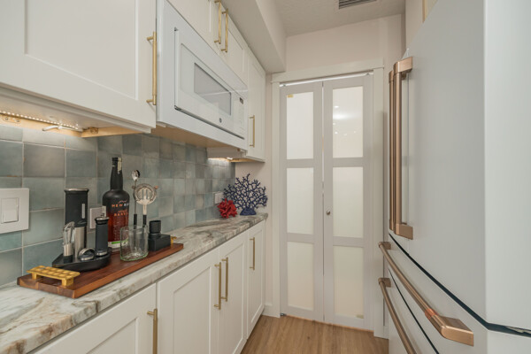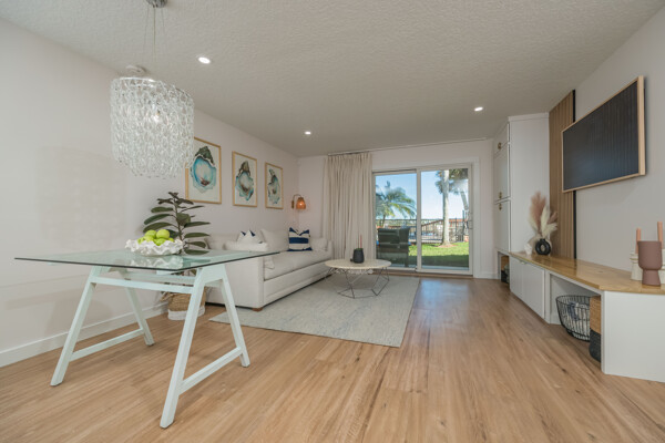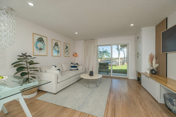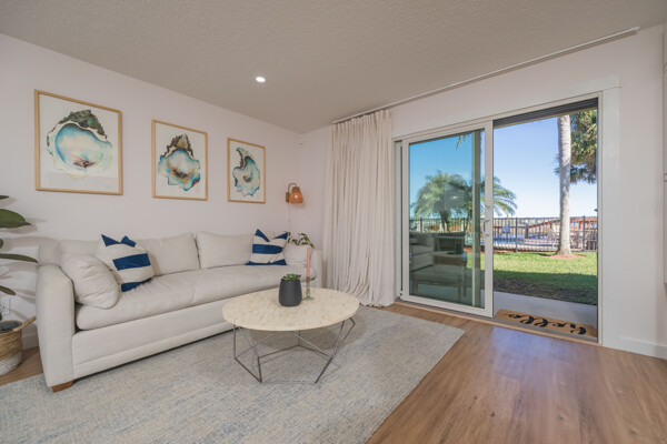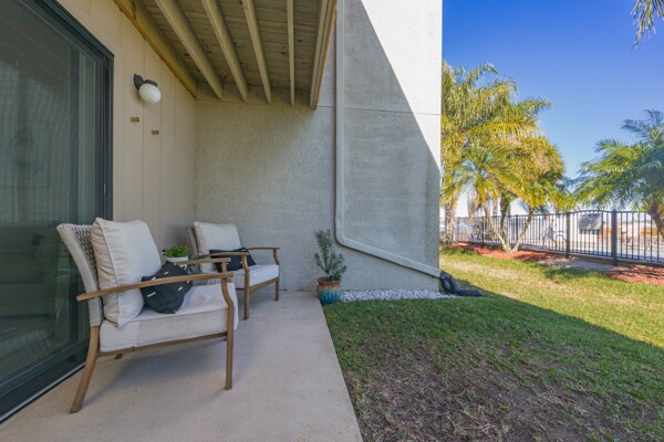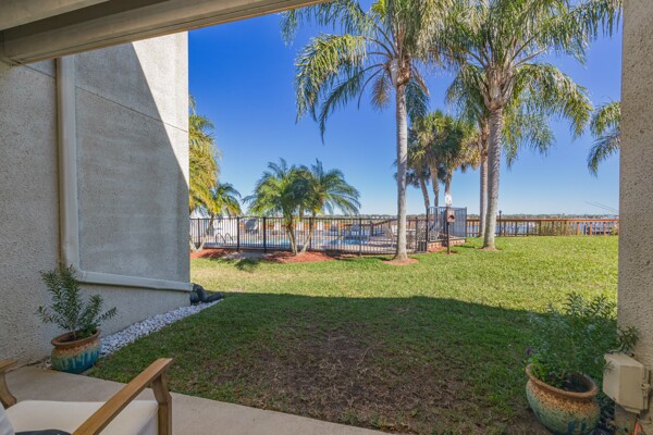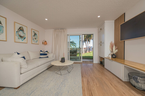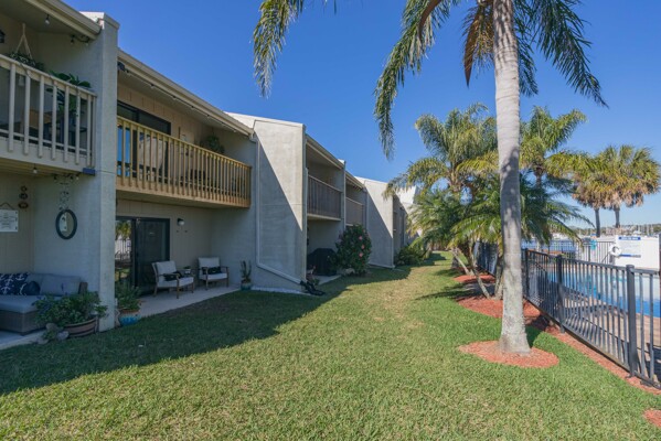 Discover a refined living experience where sophistication meets practicality in every detail. Tranquil water views from two levels create a serene atmosphere throughout the home. A private boat slip adds a touch of waterfront luxury, while the pool provides a refreshing retreat. New Anderson brand doors and windows seamlessly connect the interior with your surroundings. The bathrooms feature sugar tile floors and ceramic wave walls, and the pebble tile from Hawaii adds a unique touch to the shower floor. Cambria and Quartz countertops are unique to each of the custom solid wood vanities. Indulge in the Jacuzzi tub with heated jets and ambient lighting or relax and enjoy the views in your master bath, which includes an illuminated and heated bidet, backlit anti-fog mirror, and pendant lighting for ambiance during evening showers. The custom shower window provides excellent views of the dolphins and manatees while maintaining privacy. The ceiling downstiars has been raised by a foot. The home's vessel sinks, bath, door, and kitchen hardware were imported from Australia, and these solid satin brass fixtures are unparalleled in design and performance. Hand-milled hinges and mortised hardware throughout are sure to impress guests. Custom lighting system with fixtures by: Spark and Bell, Shades of Light, West Elm, and Anthropologie, and the additional recessed LED lights with Dimmer Decora switches help create an ambiance no matter the time of day. Customizable LED lighting within the staircase is motion-activated upon ascent and descent of the staircase. This feature is both stunning and functional. The living area features custom cabinetry and convenient access to the pool and boat slip. The master closet has soft-close doors, racks, and drawers. It was thoughtfully designed for the addition of a TV and includes additional hidden interior outlets for ancillary equipment. The hand built closet in the guest bedroom has ample storage in the built-in dresser, a hidden security drawer and the rods can be adjusted to suit your needs. The included single-car garage comes with custom solid wood floor-to-ceiling shelving for efficient storage, and a designated parking spot ensures convenience. A 200-amp upgraded service panel runs the high-capacity tankless water heater. The whole-home water filtration system has a small footprint and requires minimal maintenance. The new variable speed HVAC system and ductwork allow you to breathe easily and control the system while away via the manufacturer's app. The Caf and Samsung appliances are also wi-fi enabled, allowing you to control and monitor their activity via coordinating apps. The extra-large capacity washer and dryer by Samsung and custom shelving make laundry a breeze. Additional mounted hanging and drying racks can be neatly tucked away when not in use. The property is secured with a Ring security system, ensuring your peace of mind. This is a turnkey condominium unlike any other, with a community that is dedicated to improvements. The condominium will undergo exterior renovations in April of 2024 to replace all existing siding with Hardie board, repair the shell dash exterior, redesign and replace all balconies, and update the paint colors. There are no current or pending assessments for these projects, and the association manager is happy to review the future