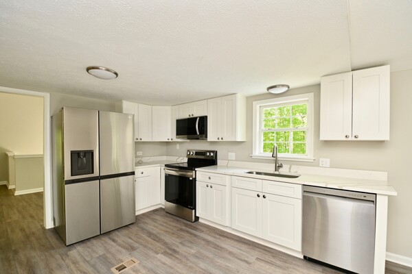 This home features updated flooring, primary bedroom on main level, kitchen with stainless steel appliances, updated baths and so much more.