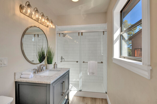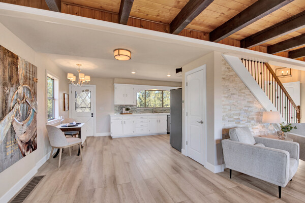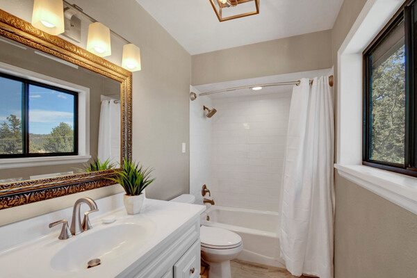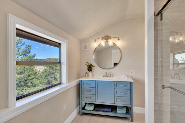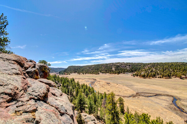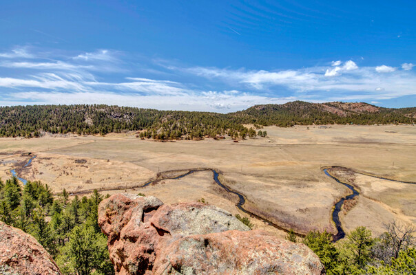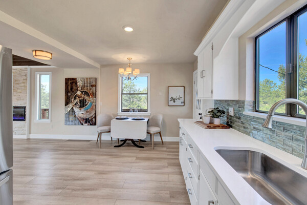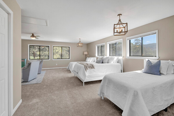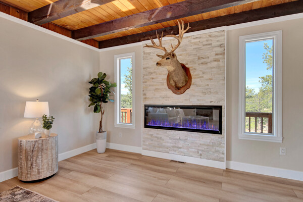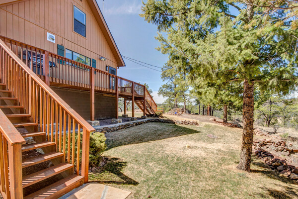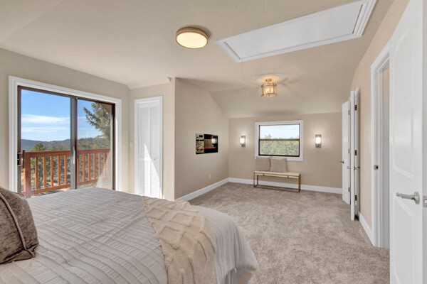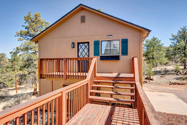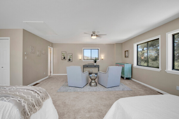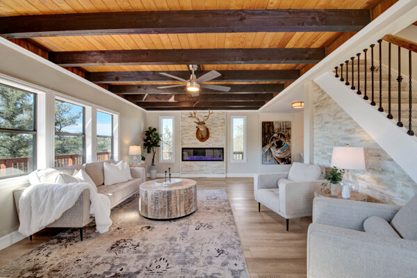 Imagine what Colorado living looks like, and here you go! A mountain lodge complete with a guest/bunkhouse, all remodeled with mountain modern finishes, situated on nearly 27 acres. This home closely neighbors over 500, 000 acres of BLM land; an outdoor enthusiast's dream. The main home brings in loads of bright, natural light, is open and airy with forest views from every window. Gorgeous, exposed natural wood beamed ceilings are a highlight on the main level, along with brand new LVT, ceramic tile, fresh paint and trim throughout. Enjoy the bright white kitchen with newer appliances. Also from the kitchen: access to the expansive deck (freshly power washed and stained) that surrounds the entire home. Upstairs, enjoy a balcony and fireplace from the owner's suite, attached to a beautifully renovated bath. The additional bedroom upstairs would make a wonderful office or guest room. Notice the fully finished, walkout basement is complete with laundry facilities, a large, finished storage room, and oversized bedroom. Let's head to the guest/bunkhouse via the attached deck breezeway. Over 600 sq ft. of living space is located directly above the oversized garage, this bonus room, could be used as guest quarters which could sleep more than 8, also use this space as a bunk house, game room, or mother-in-law suite, with the added full bath and large closet. During the Spring, a small stream flows through the property. You've struck gold with this property literally with an old, abandoned gold mine on the grounds. Trek over to the boulders and enjoy soaring views of the valley down below and of the clifftops of the BLM land. This property offers the possibility of adding on if you desire. Add a barn, additional shop, there are flat areas that make this very feasible. Never stress about guest parking as there is ample space. This is what Colorado is all about! Square footage is deemed reliable, buyer, and buyer's agent to verify square footage.