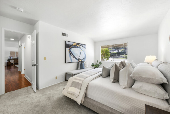 A dedicated in-unit laundry closet offers additional storage and accommodates a full-size, side-by-side washer and dryer. The property also includes a generously sized private-use storage room and assigned covered carport space conveniently located near the unit.