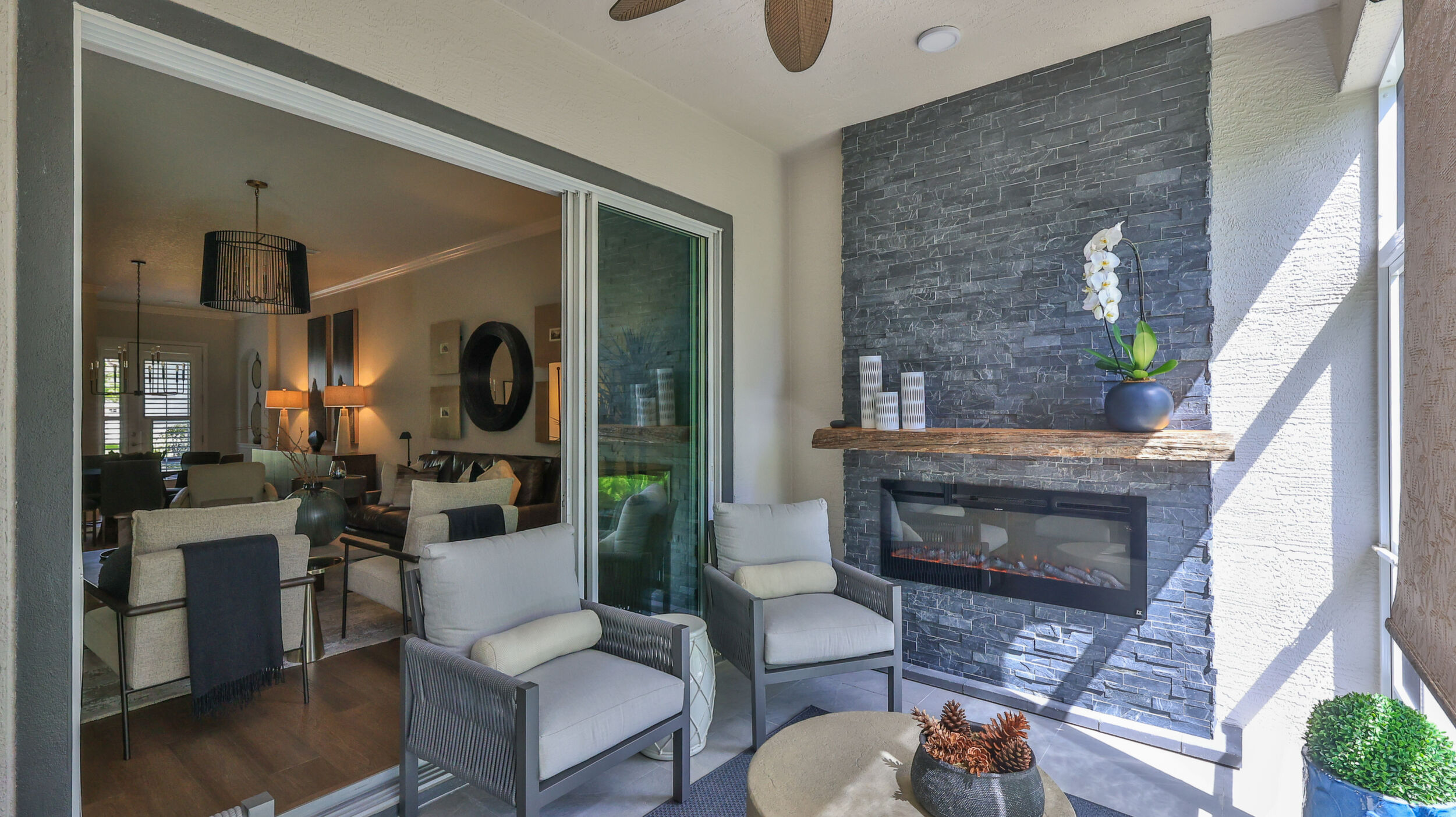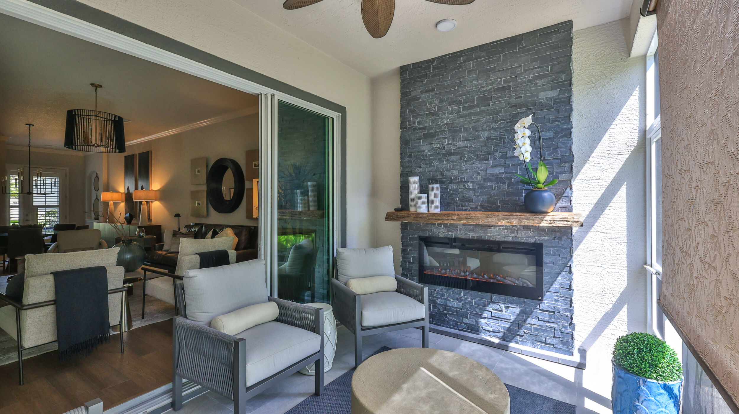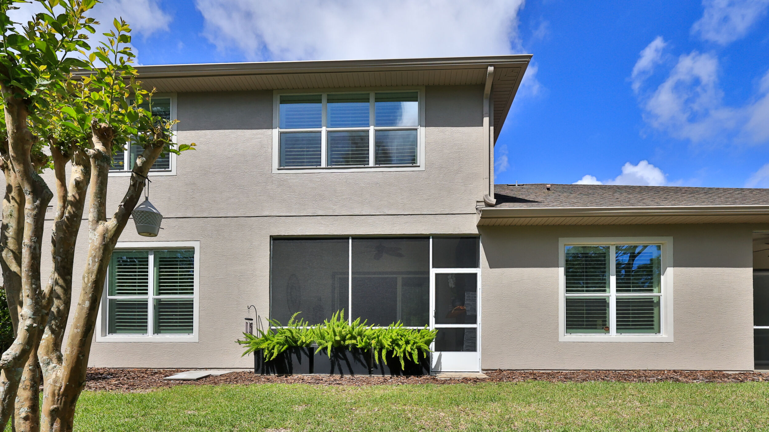 UPGRADES GALORE in this 3 Bedroom, 3 Bath, 2 Car Garage, MAINTENANCE FREE Villa in the GATED community of Plantation Bay Golf & Country Club! You will notice right away the freshly painted exterior, and the coastal landscaped, pavered & lighted walkway to the front entrance. Desirable concrete block construction with stucco over & stone features. Step inside this home with 2,056 sf Living Space and find the luxury finishes everyone dreams of! Shaw luxury Vinyl Plank Flooring, Fresh Paint in (Gossamer Veil by Sherwin Williams), Plantation Shutters including the front door, Crown Molding & New Baseboards throughout. Open Floor plan with the Living/Dining/Kitchen areas perfect for entertaining! Spacious kitchen with 42'' wood cabinets, slim granite countertops, Stainless Steel Appliances, new LED & dimmer lighting, two glass panel feature doors, soft close cabinets & pull out drawers, and custom pantry shelving. LOWER LEVEL Owner's Suite with preserve views has custom closets, custom linen closet & draperies, dual vessel sinks in bath with new black finish hardware, and tiled walk in shower. Lower level 2nd Guest bedroom with custom closet shelving/work station, full bath with vessel sink & tub/shower. Large 2nd Level FLEX ROOM off the 3rd Bedroom/Bath is perfect when guests are over for extra space and privacy! Use for office space, additional living/family, reading or hobby room! Spacious 3rd bedroom with preserve view is complete with its' own private bath with walk in shower, vessel sink, & granite countertop. All 3 toilets are new comfort height. Enjoy watching the wildlife from the newly screened in Lanai with tiled flooring, sun shade, & electric fireplace! Lower Level Laundry room is complete with washer/dryer, custom wood cabinets & countertop, pull outs, and designer ship lap. Freshly painted garage interior with hanging storage racks & ceiling fan. NO CDD FEES! LOW Utility Fees! Ask about optional furniture! EXTERIOR MAINTENANCE Includes: ROOF, PAINT (Freshly painted in 2025), Gutters/Fascia/Downspouts, Lawn Mowing, Trimming, & Irrigation, Termite Bond! Optional Golf, Sports & Fitness, and/or Clubhouse Memberships Available to the World Class Amenities including the Plantation Bay Championship 45 Hole Golf Course, Two Resort Style Pools, Fitness Center, Full Service Spa, Tennis, Pickleball, Bocce Ball Courts, Miles of Walking or Biking Trails, Relaxing Lakefront Parks, and Playground. Golf Cart Friendly Community. Conveniently located near grocery shopping, restaurants, interstate access, area events, the Ormond Loop, State Parks, and 10 minutes to the beautiful coast! Live the resort style life you have been dreaming of!