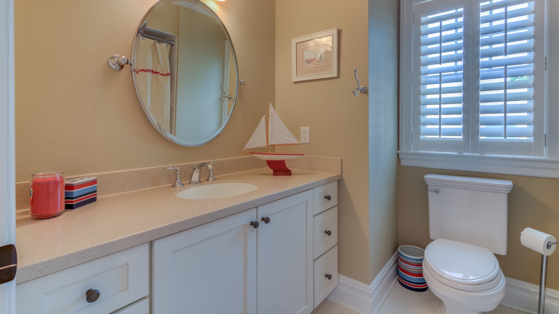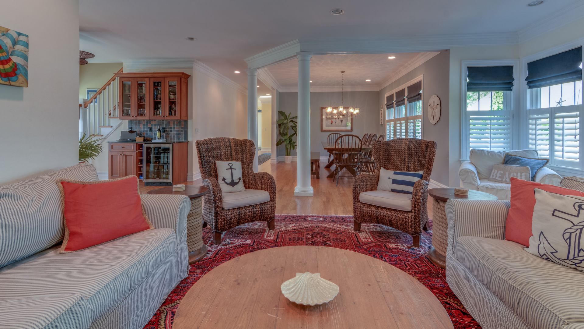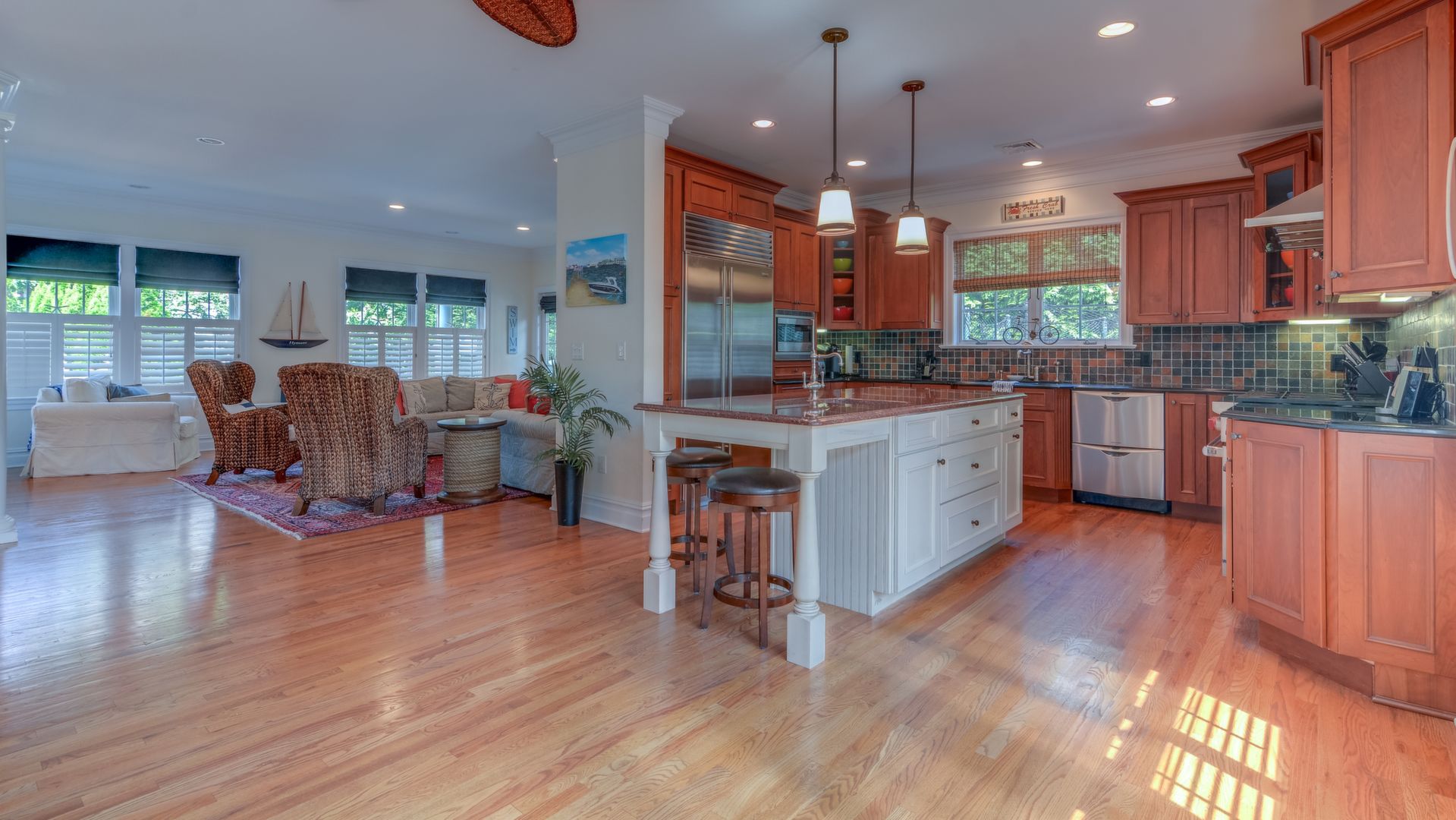 Nantucket-style Bay Header boasts 5023 sq ft of living space. It features 6 BR's & 5 full baths, open floor plan, high-end kitchen w/Wolf/Sub Zero appliances, large center island, dual dishwasher & wet bar.
