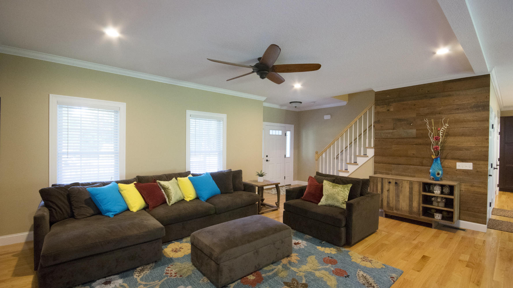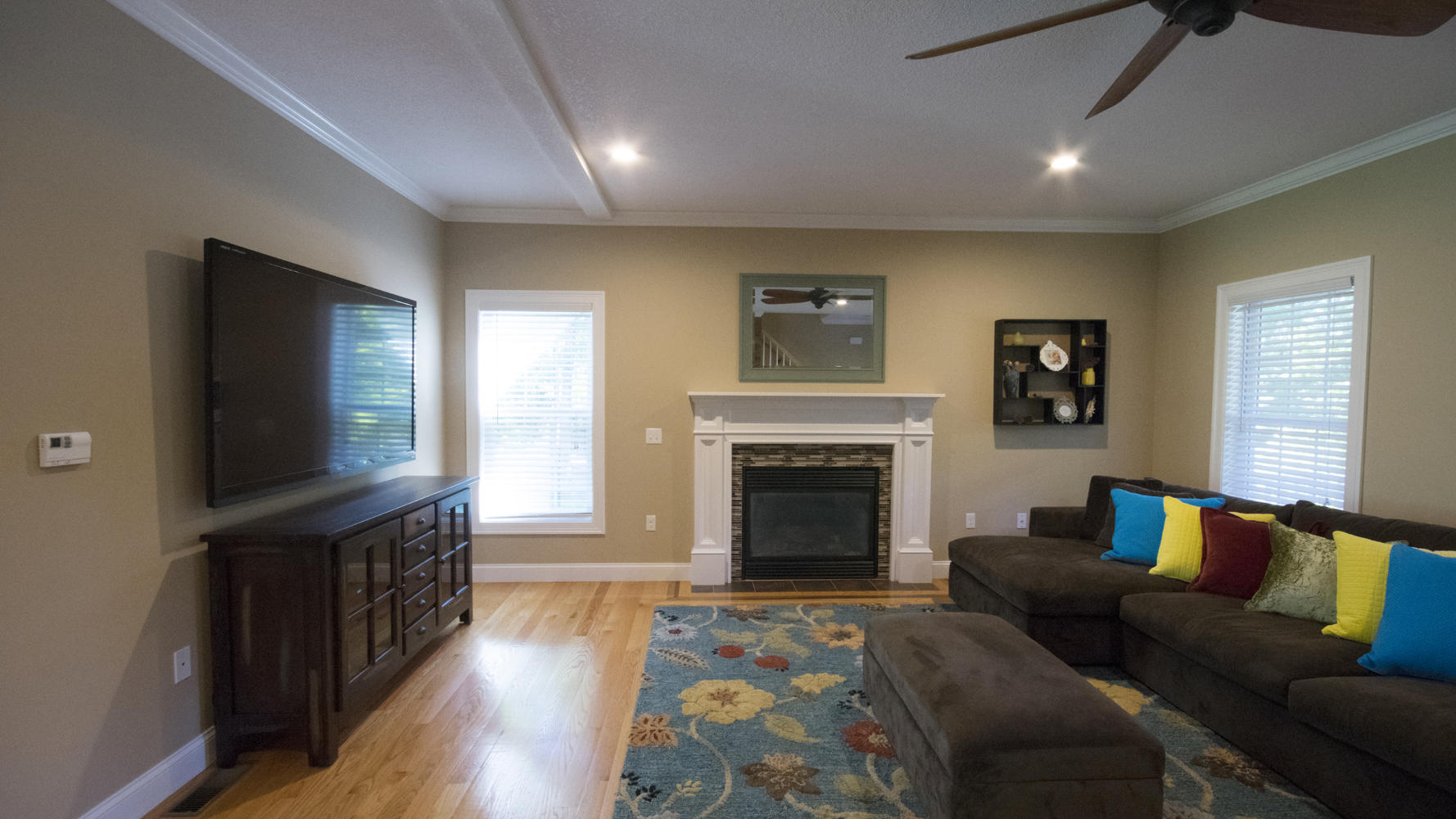 Lengthy driveway features two-car garage plus 5 off-street parking spaces.