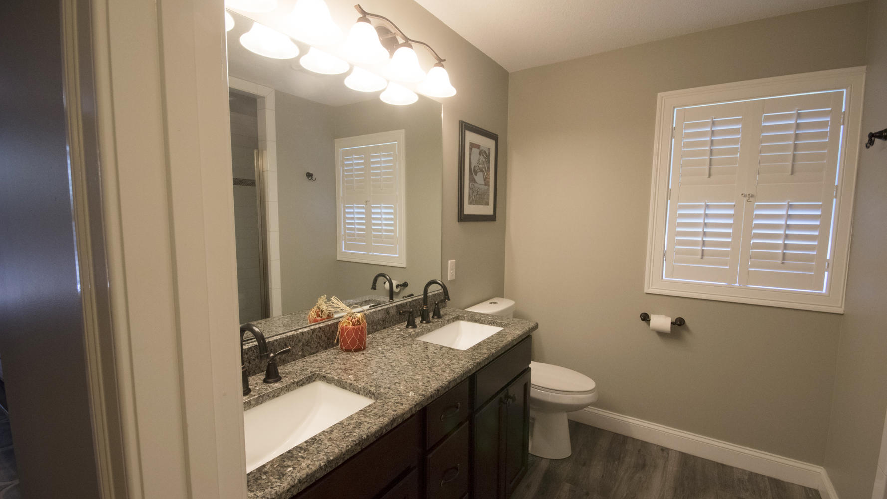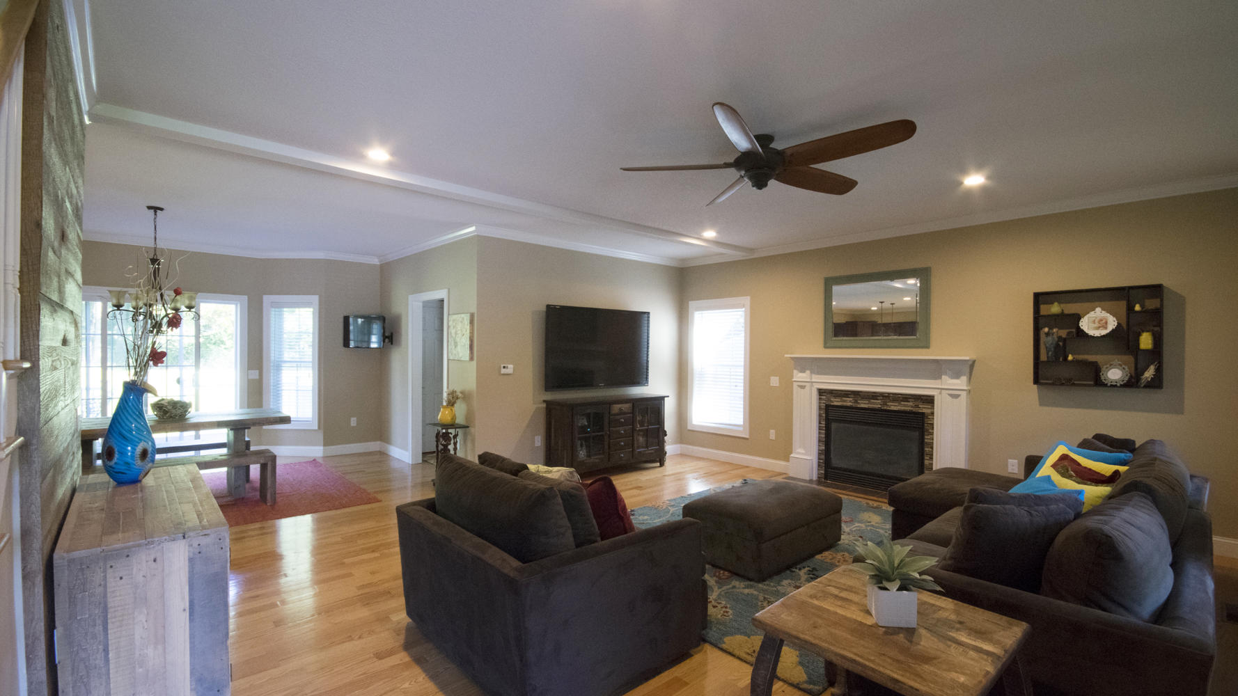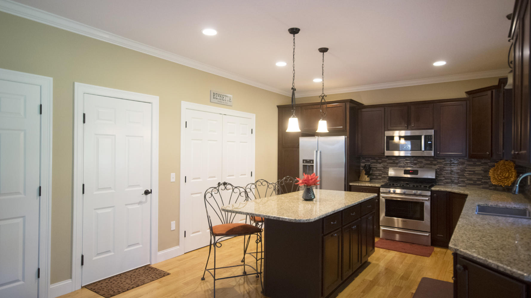 The open-concept kitchen/dining area includes granite counter-tops, custom mosaic back-splash, Energy Star rated Bosch appliances and gleaming hardwood floors throughout.