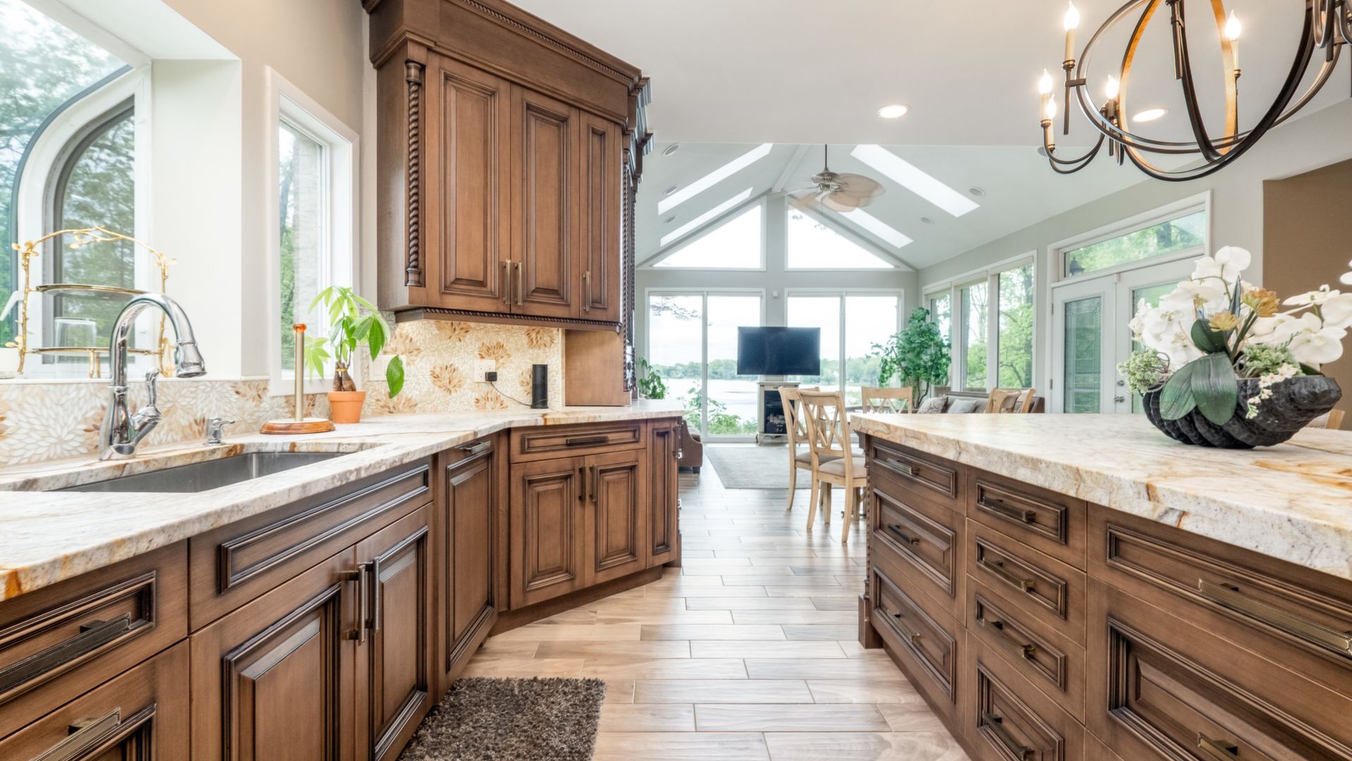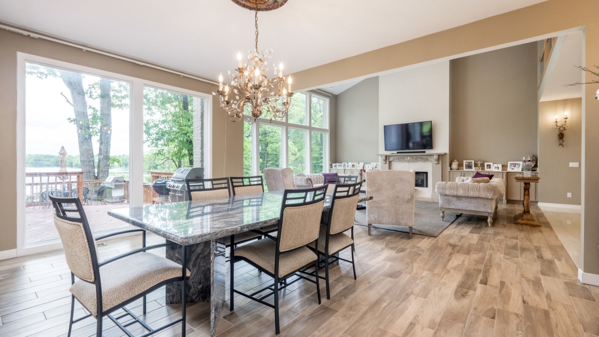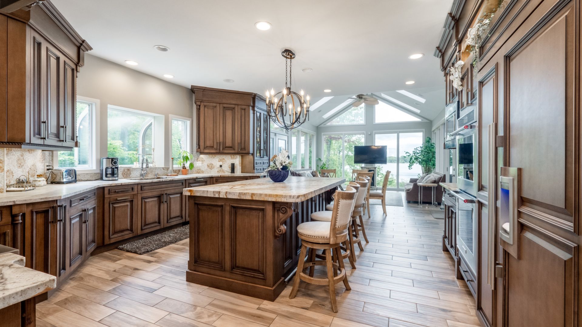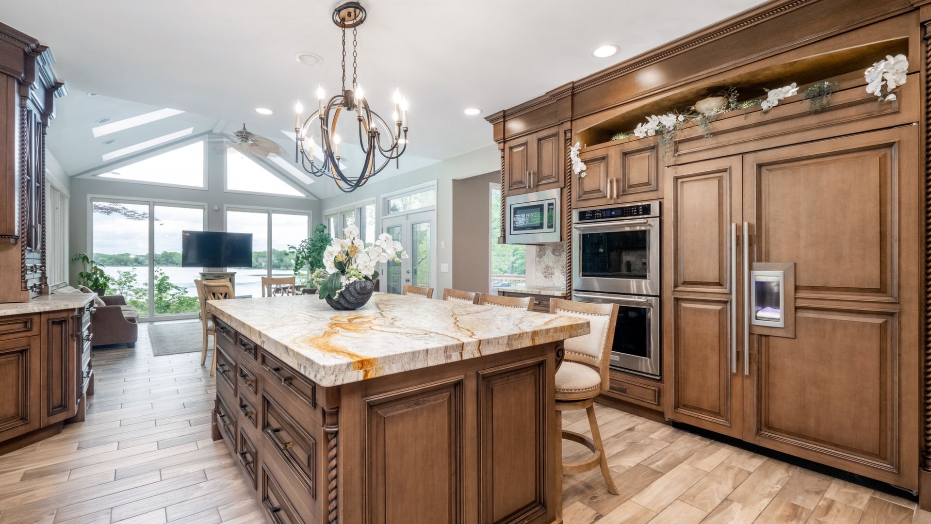 Newly Remodeled Estate Home on Private, Secluded 2 Acre Setting Surrounded by Natural Beauty, Amazing Lake Views & 100 Ft. Frontage on Pleasant Lake. Gorgeous Grounds with Wooded Ravine & Stream with Bridge. 8000+ Sq.Ft. of Living Space w/ Marble & Porcelain Floors, Dramatic 2-Story Foyer with Dual Staircase, 2-Story Great Rm with Fireplace & Lake Views. New Gourmet Kitchen with Custom Wood Cabinetry, Quartzite Counters, Premium Appliances. Breakfast Nook & Sun Room with Fireplace. Library/ Den, Large Dining Room. Spacious 1st Floor Master / Fireplace, Dressing Area w/ His & Her Walk-In Closets, Luxury Bath with Granite & Marble, Jacuzzi Tub & Granite Shower. Upper Level w/ Bridge Overlooking Great Rm & Foyer, Guest Ste with Private Bath, Walk-In Closet & Deck, 3rd & 4th Bedrooms with Lake Views. Upper Marble Bath with Jacuzzi. 3,200 Sq.Ft. Walkout Lower Level with 2nd Kitchen, Rec Rm, Family Rm with Fireplace, Exercise Room, Possible 5th Bedroom, Full Bath. Large Deck & Brick Paver Patio, 4 Car Garage. All M & D Approx.